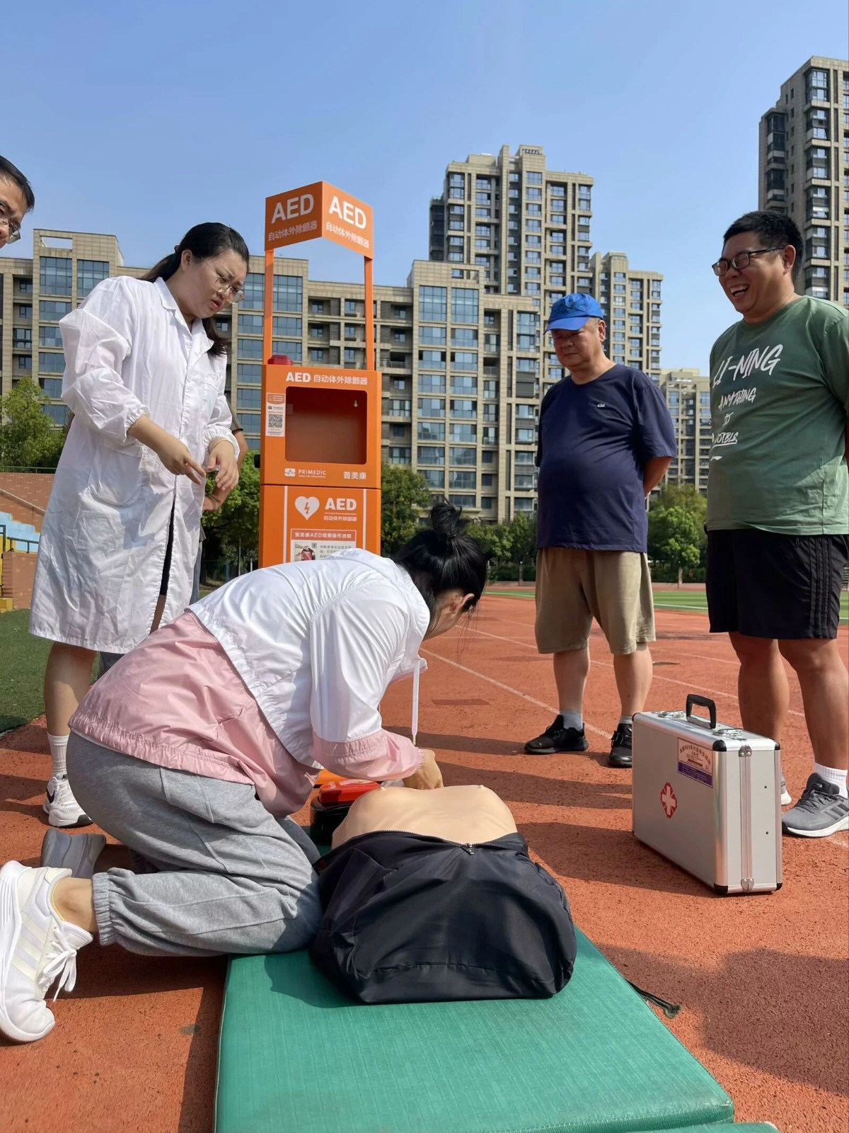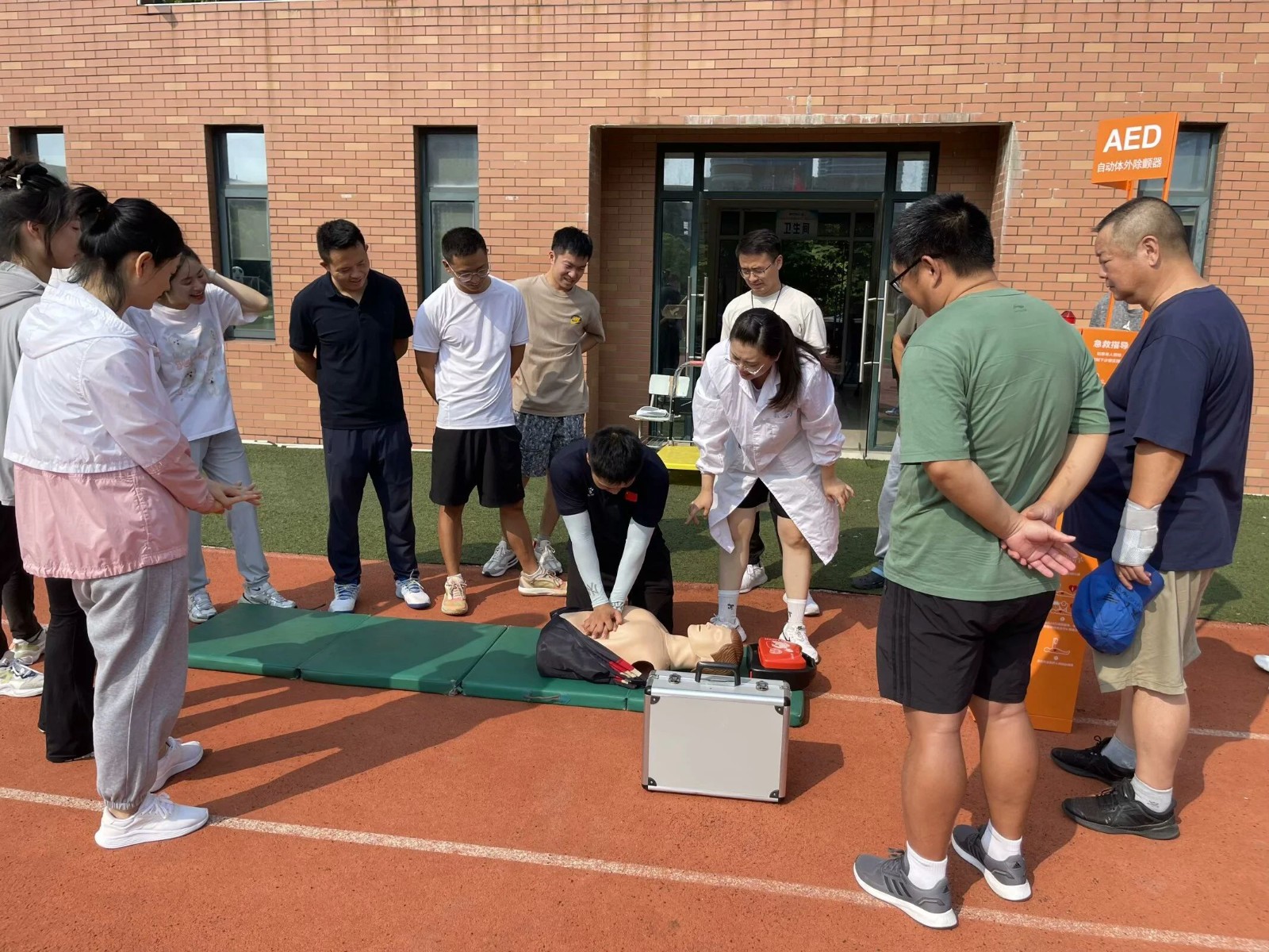 近日,通师一附的操场上,一场特殊的培训吸引了众多目光。该校全体体育老师及部分教师齐聚一堂,参加了自动体外除颤器(AED)急救技能培训。此次培训的目的在于提升教师们面对突发心脏病事件时的应急反应能力,确保校园内师生的生命安全。