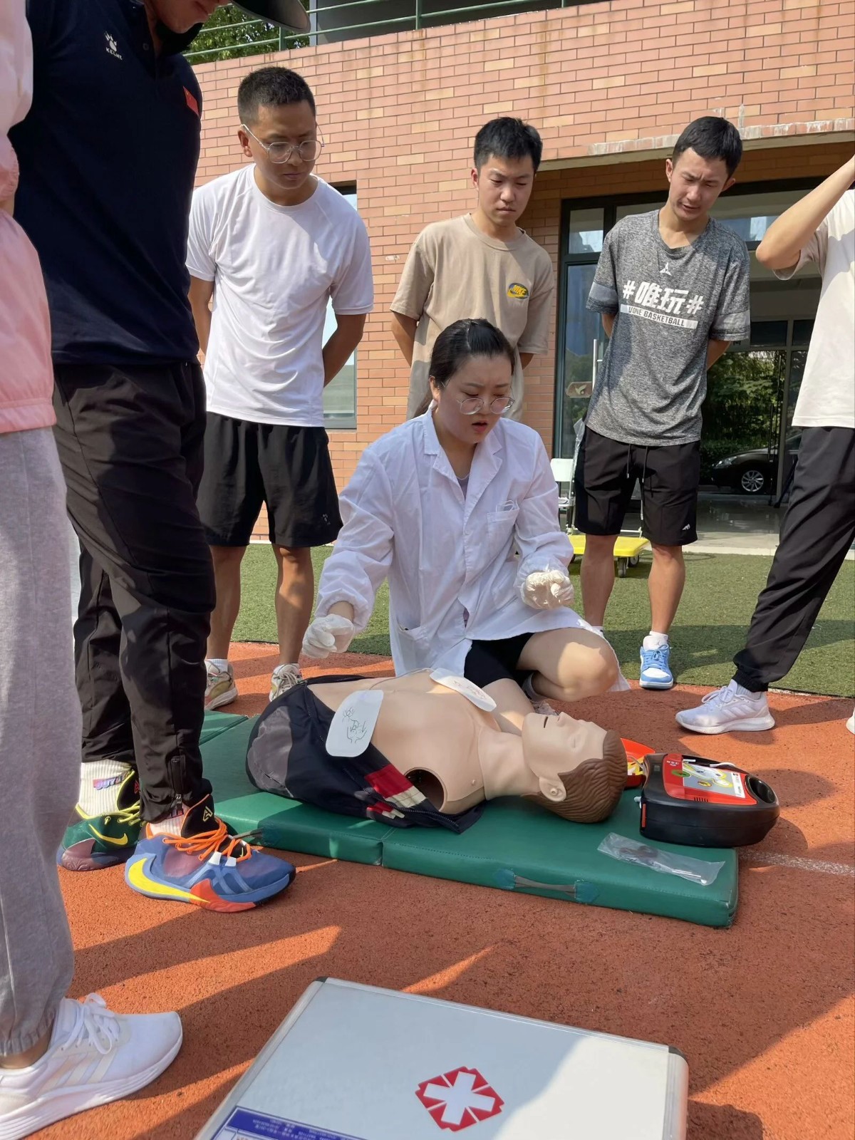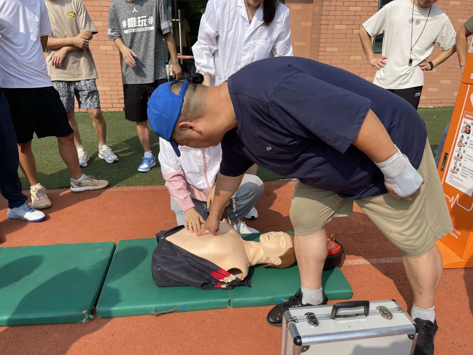 培训现场,专业的急救讲师姚清医生通过生动的讲解和实操演练,向教师们传授了AED设备的使用方法和心脏复苏的关键步骤。教师们认真聆听,积极参与模拟练习,每个人都表现出了极高的学习热情和对生命负责的态度。