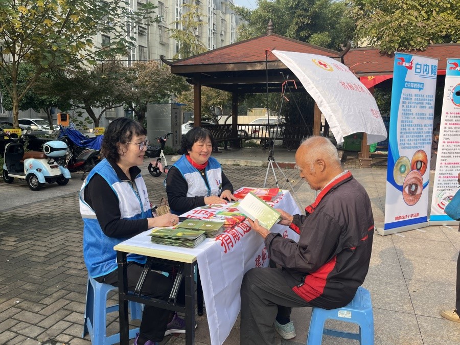 自2016年起,江苏省红十字会等单位联合发起“江苏博爱光明行”公益项目,用于救助贫困低收入的白内障患者。多年来,建邺区红十字会不断拓展项目实施路径,纳入“红十字养老照护”“红十字博爱送健康”系列,融入“一社区一案例”项目平台,联手共建社区,携手南京医科大学眼科医院为辖区老人免费开展白内障和眼病筛查,并对检查出的白内障患者给予自费部分一定数额的资金救助和绿色就诊通道等服务,切实减轻老年患者负担,让更多白内障患者重见光明。