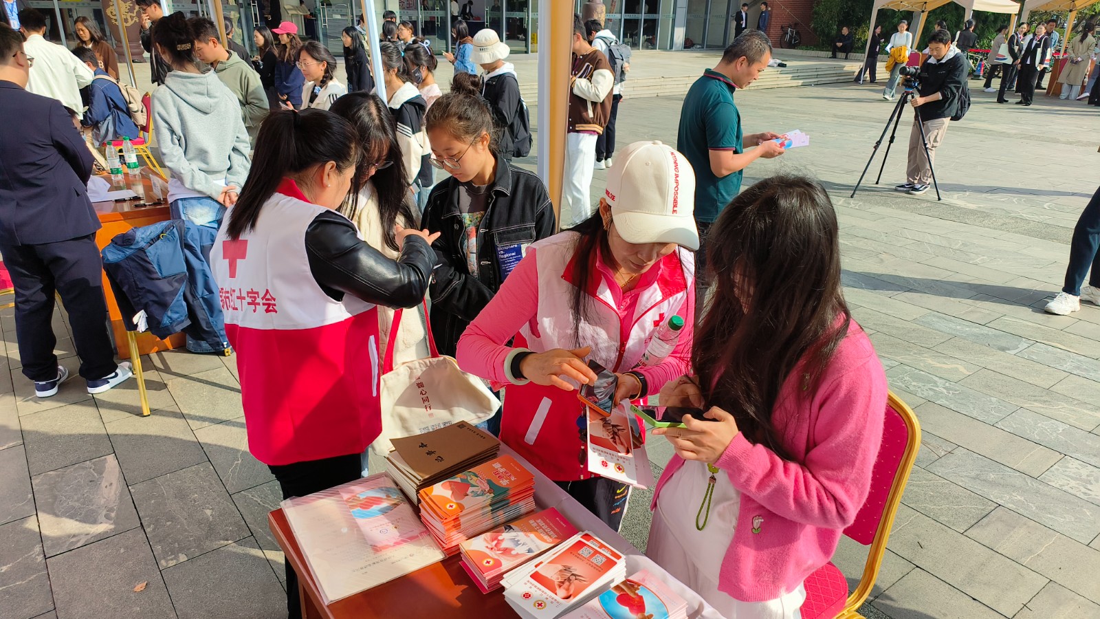 活动现场,摆放了红十字“三献”知识宣传展板,志愿者们向过往师生发放宣传资料和宣传品,并以自己亲身献血的经历以及登记遗体和人体器官捐献的感悟向师生宣讲无偿献血、造血干细胞捐献、遗体和人体器官捐献知识,传播公益理念,动员他们积极参与“三献”公益事业,用爱心传递希望,为更多需要帮助的人送去希望和光明。现场不时有师生前来展位前咨询相关问题,志愿者们一一耐心解答,对有成功献血经历又有意愿加入中华骨髓库的志愿者进行预登记,指导有器官捐献意愿的人线上进行意愿登记。