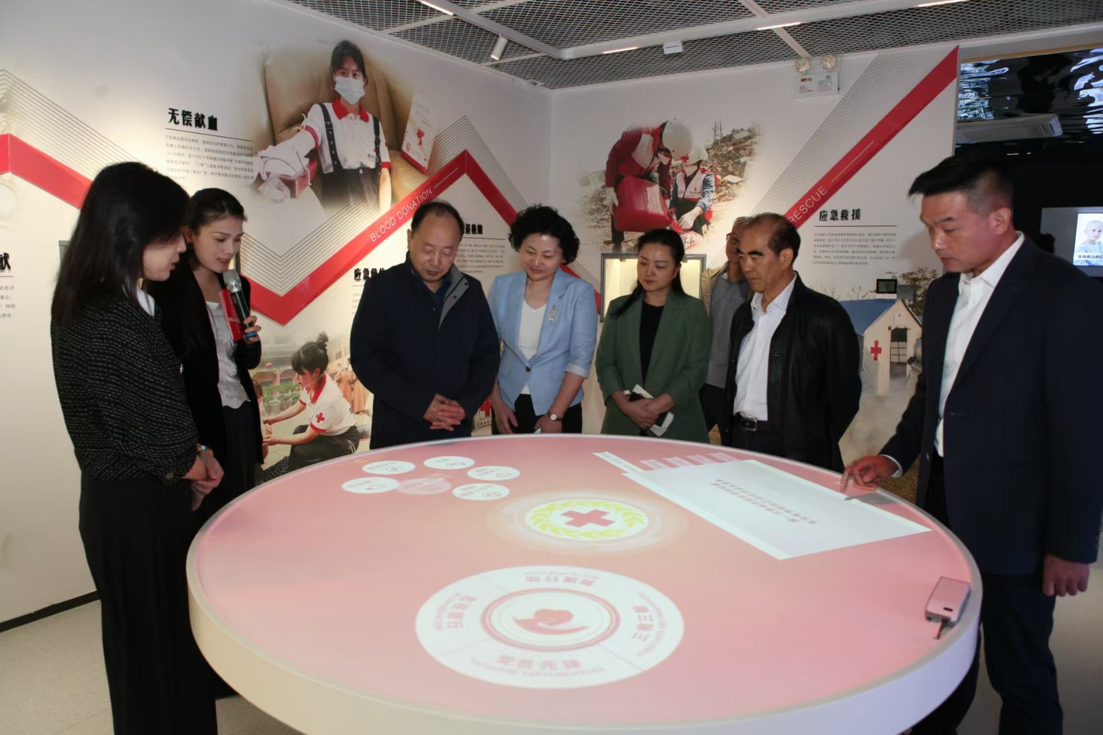 吴红星副主席一行首先参观了宜兴市红十字人道教育中心。该中心于2020年8月筹建,2022年建成启用,是内地首家也是目前唯一的红十字人道教育沉浸式体验场所。通过观摩国际人道法沉浸式教育活动以及互动展台、影音视频、微缩实景模型等展陈设施,调研组全面了解了市红十字会在组织建设、人道服务、志愿服务等方面的工作进展与成效。吴红星副主席对宜兴市红十字人道教育中心的建设给予了高度评价,认为这种沉浸式体验方式能够更有效地传播红十字精神,提升公众的参与度与认知度。