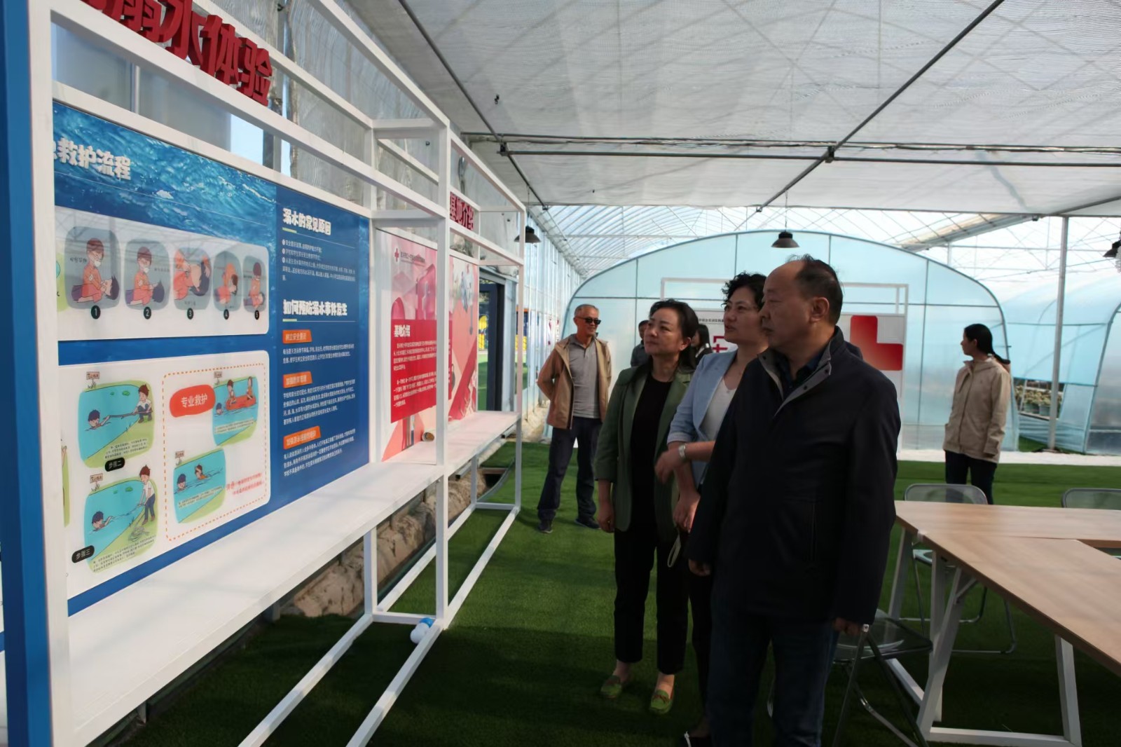 随后,调研组一行来到宜兴市红十字综合实训实践基地。基地设有同心营、多功能应急救援综合训练中心、宜小红会客厅、“艺•安•生”空间站、美丽家园志愿服务村五大功能区,集应急救援救护实训、生活艺术体验、人道文化交流和社会实践赋能于一体。参观过程中,吴红星副主席详细了解了综合实训实践基地的功能设置及使用情况,对市红十字会在应急救援、救护培训等方面的工作给予了高度肯定。他指出,红十字会要聚焦主责主业,不断提升救援救护技能,确保关键时刻能够拉得出、上得去、救得下。同时要加强宣传,持续扩大影响力,让更多的人了解红十字、支持红十字、参与红十字。