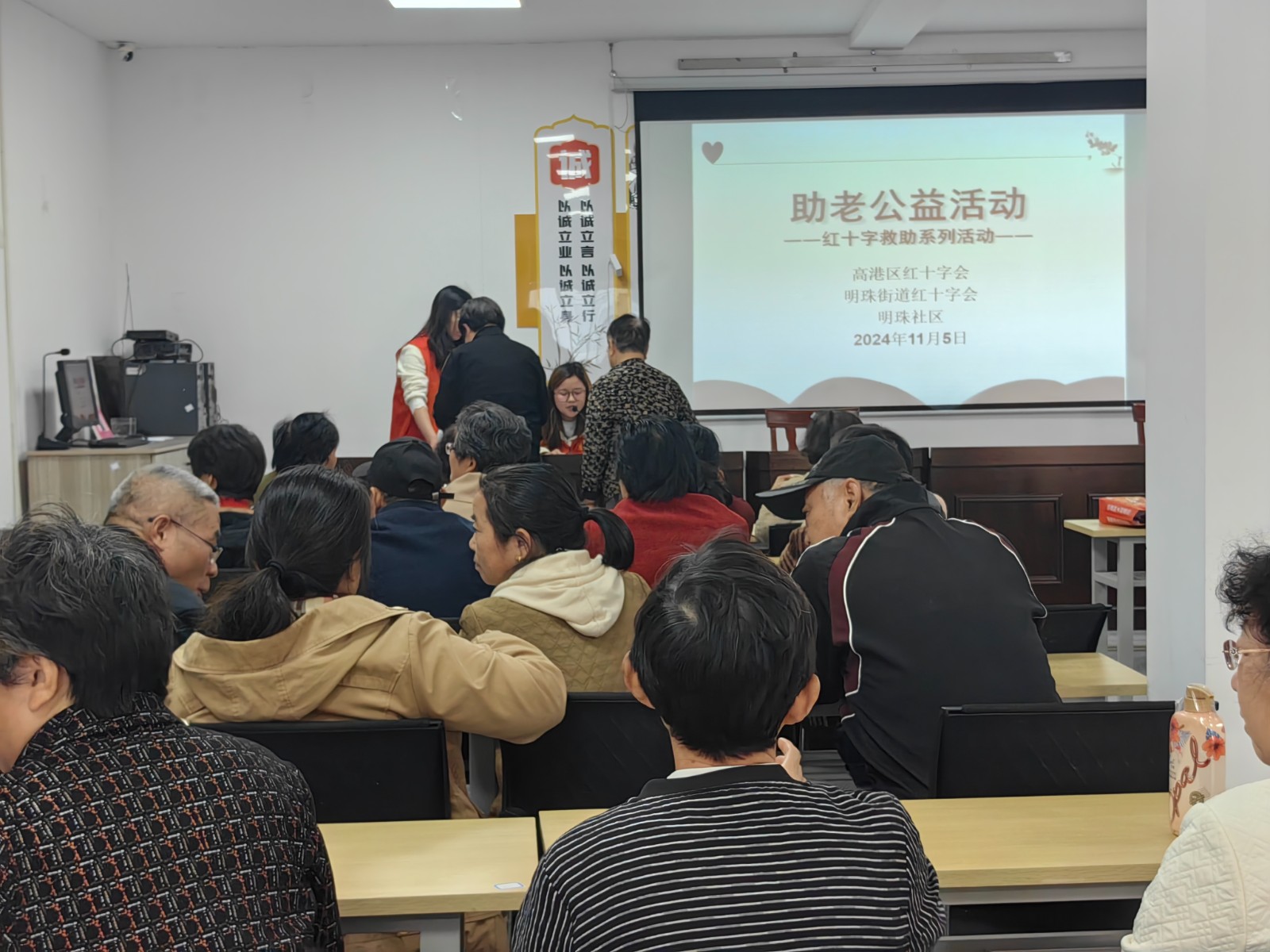 为传承中华民族孝老爱亲传统美德,弘扬“人道、博爱、奉献”的红十字精神, 11月5日下午,明珠街道红十字会联合明珠街道党建办公室、泰州医药高新区(高港区)明珠星火工作事务所走进明珠社区二楼会议室开展助老公益活动。