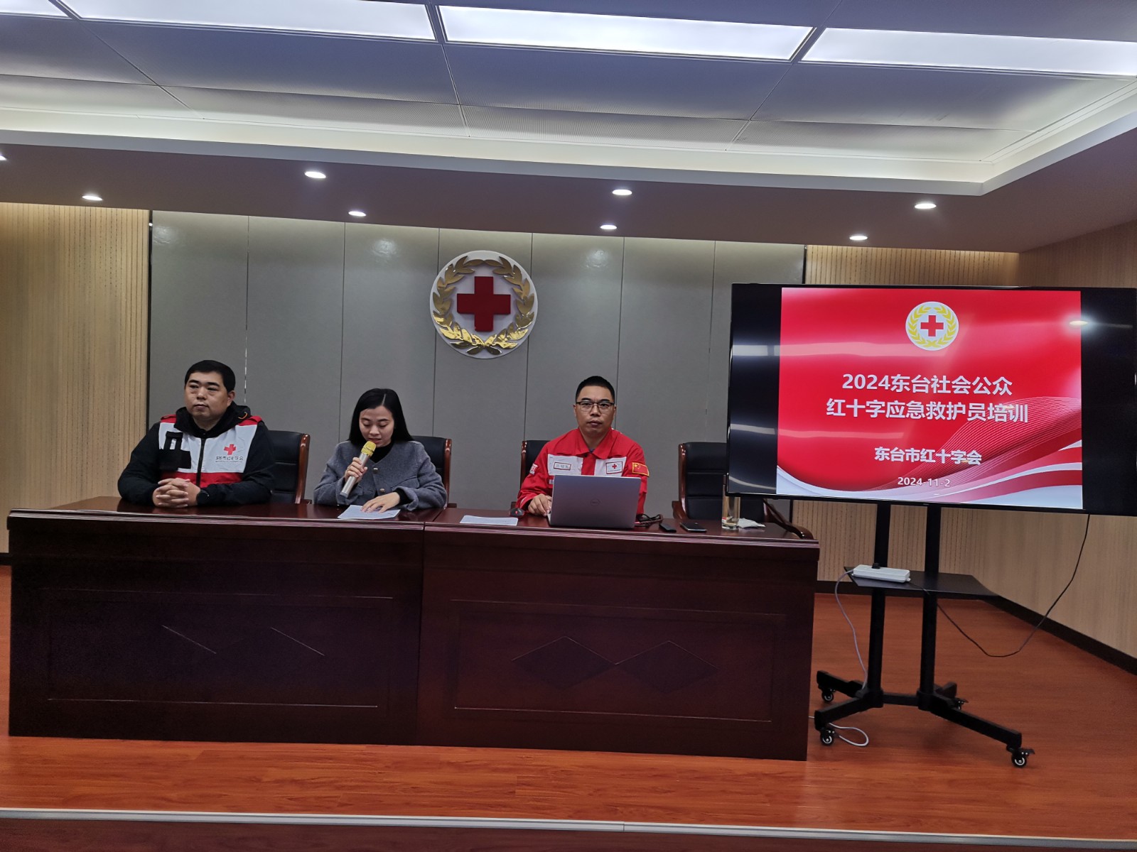 11月3日,东台市红十字会在启平社区红十字应急救护培训教室组织开展2024年第七期红十字救护员公众培训班,30余名来自社会招募的学员参加培训。为调动学员的学习积极性,市红十字会邀请利用心肺复苏术救人的红十字救护员朱玉玲现身说法。