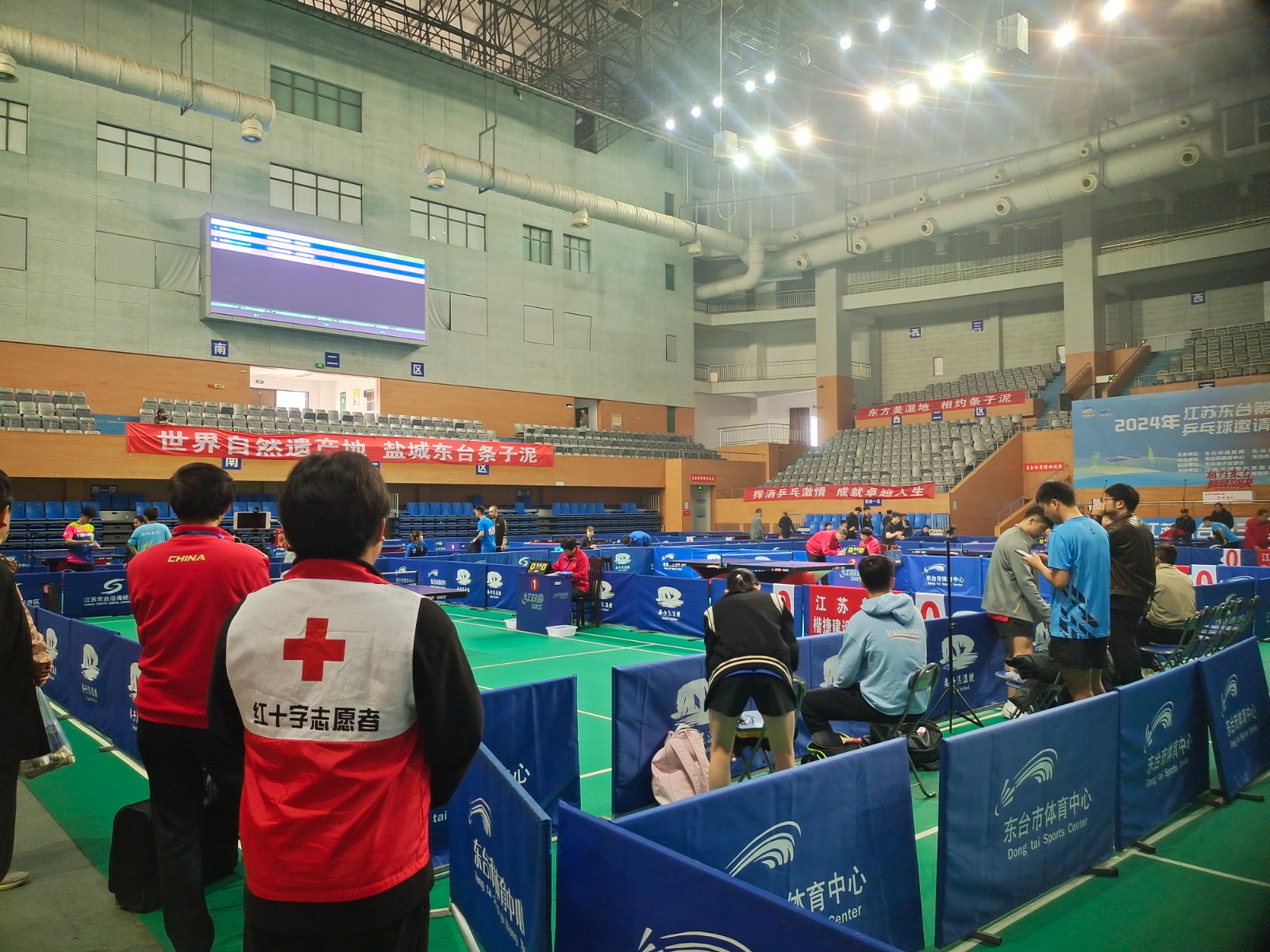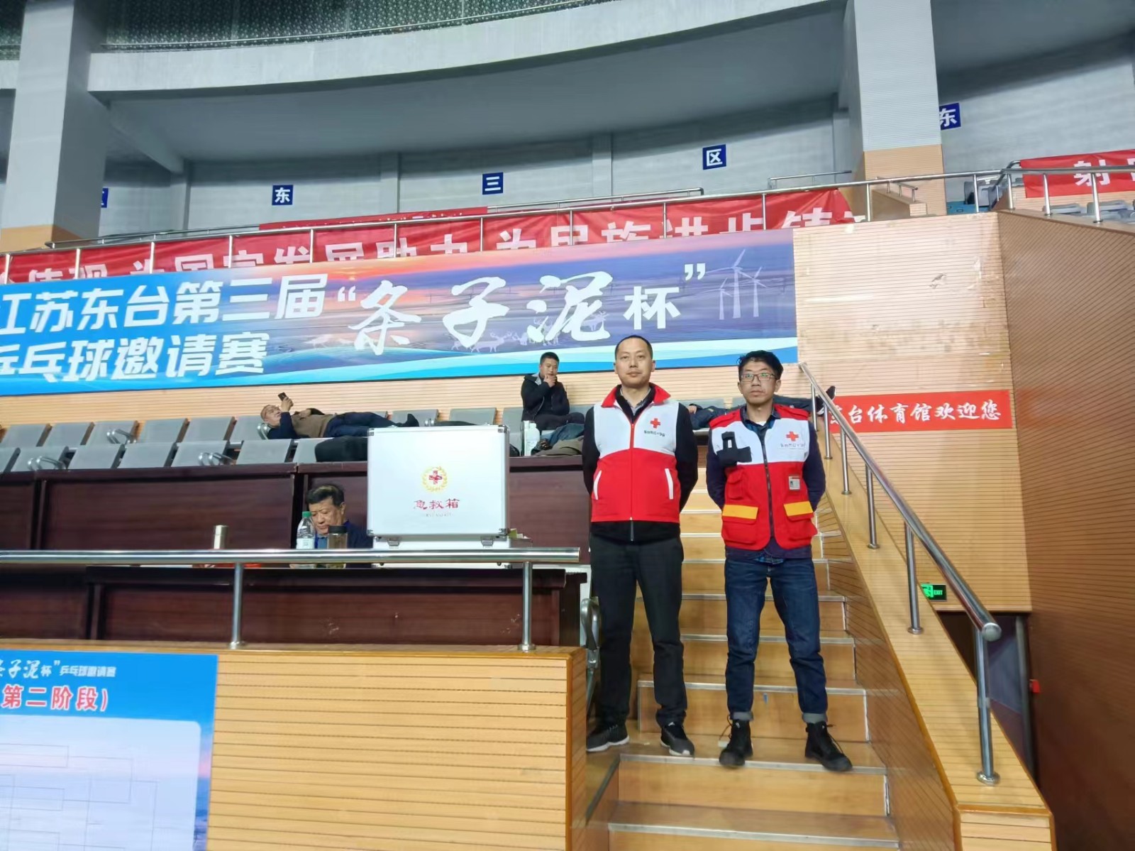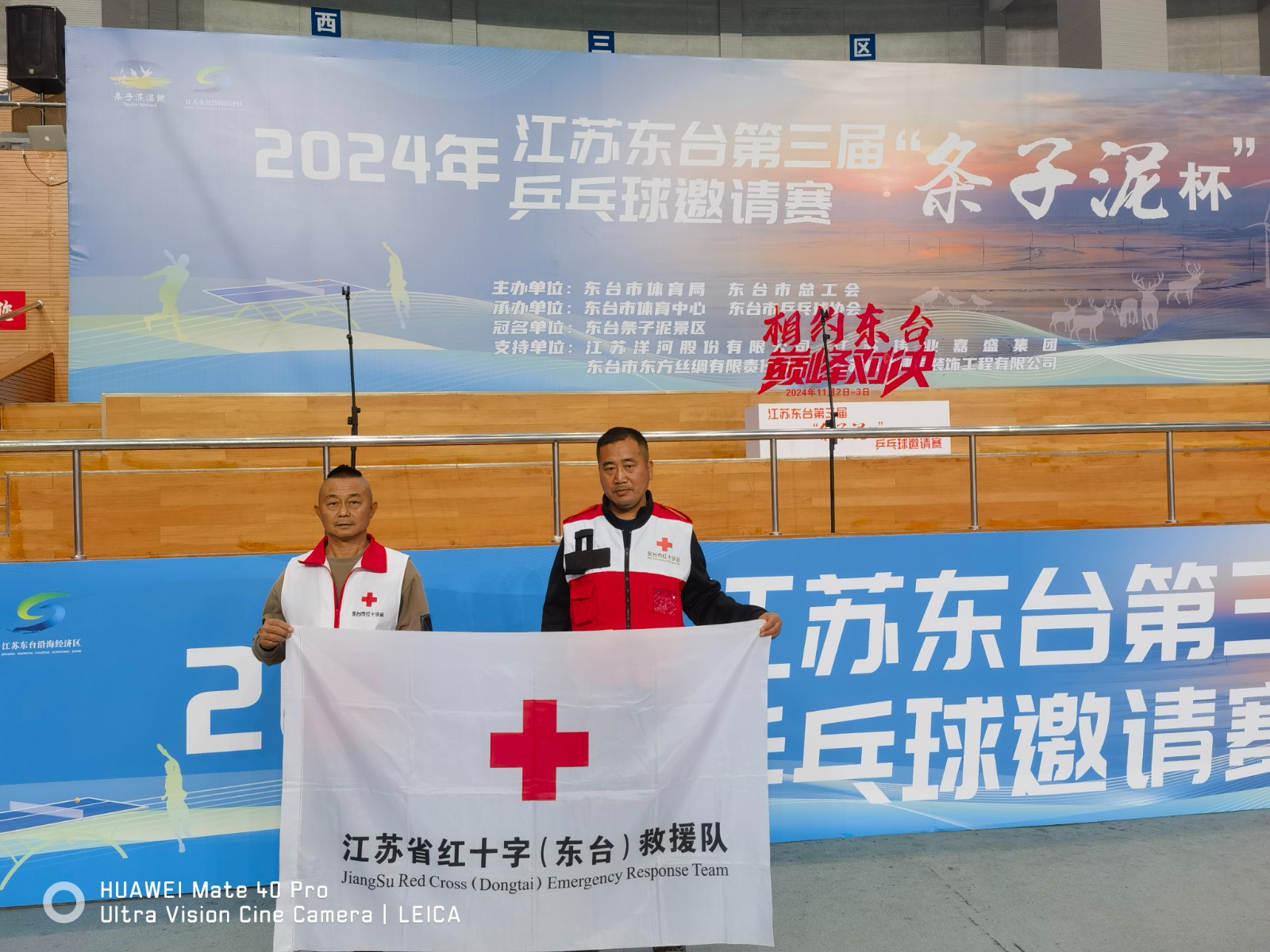 11月2-3日,由东台市体育局、东台市总工会主办,东台沿海经济区承办,东台市体育中心、东台市乒乓球协会协办的第三届“条子泥杯”乒乓球邀请赛激情开赛。江苏省红十字救援队受邀为此次赛事提供应急救护服务保障。