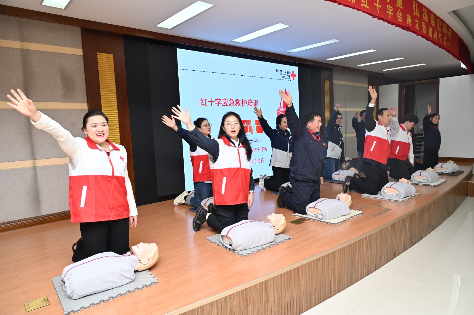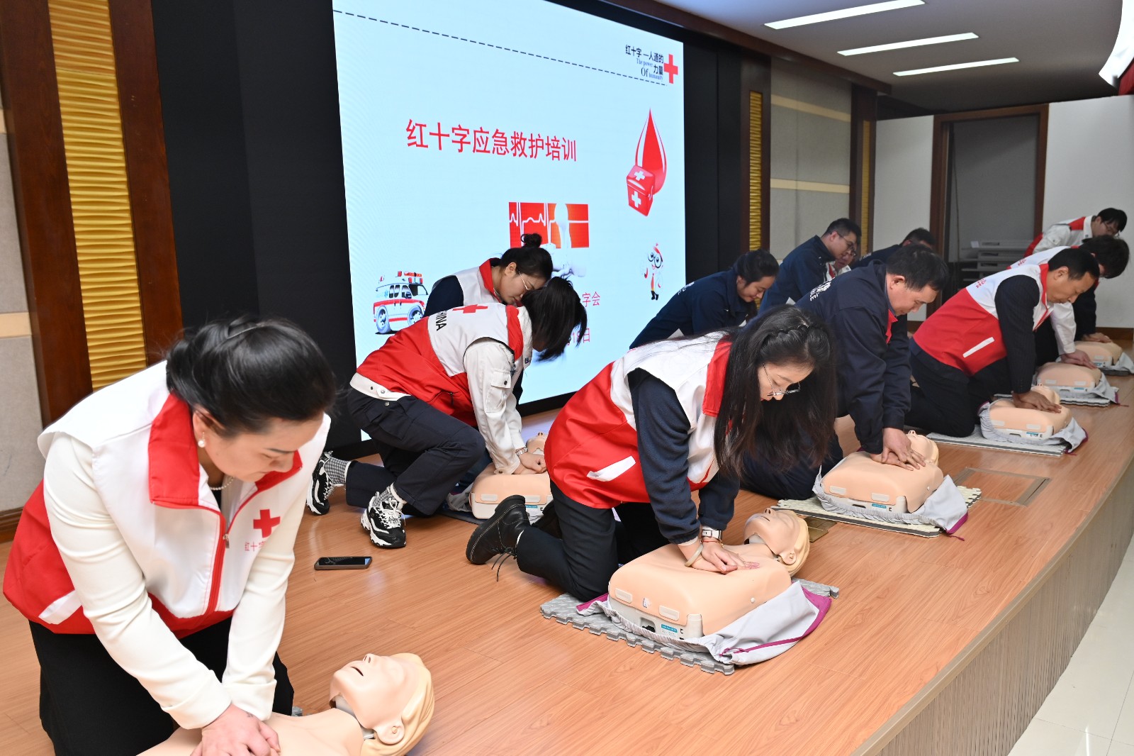 红十字志愿者和企业职工代表接受了应急救护培训,开展了造血干细胞宣传志愿活动。