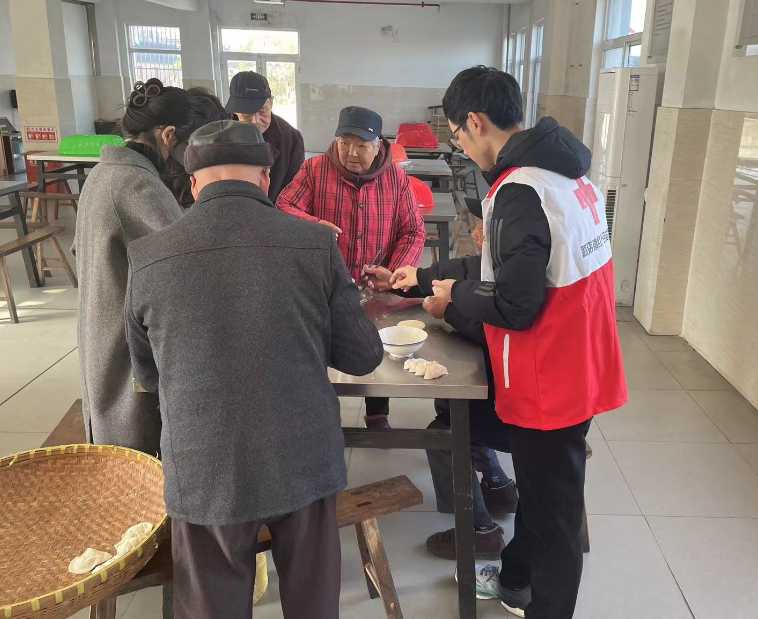 11月28日中午,新店镇红十字会组织志愿服务队走进新店敬老院开展包饺子志愿服务活动。他们带着新鲜的食材和满满的爱心,与敬老院的工作人员一起指导老人们包饺子。此次活动,不仅仅是为老人们送去了一顿美味的饺子,更是送去了一份关爱与陪伴。在感恩节这个特殊的日子里,志愿者们用实际行动践行着文明与奉献的精神,让敬老院里的老人们感受到了社会的温暖和关爱。