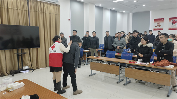 培训班上,红十字救护师资围绕创伤救护、心肺复苏术、AED使用、气道异物梗阻急救法等,采取理论知识与实际操作相结合的授课形式,向志愿者们普及应急救护知识和技能。志愿者们听讲认真,并积极主动配合老师进行操作演示,课堂气氛非常活跃。为了确保每一位志愿者都能熟练掌握急救操作流程和要点,两位培训老师分组带领大家反复练习实操技能。