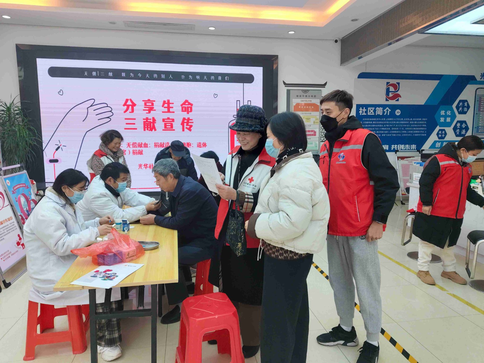 为进一步弘扬“人道、博爱、奉献”的红十字精神,提升群众对“三献”工作的知晓率、支持度和参与度。12月10日上午,光华社区博爱家园联合社区卫生服务站开展“分享生命,三献宣传”活动(三献:无偿献血;捐献造血干细胞;遗体和人体器官捐献),传播捐献理念,传递人间大爱,呼吁更多的爱心人士加入“三献”志愿者行列中来,用爱和行动赋予生命另一种意义。