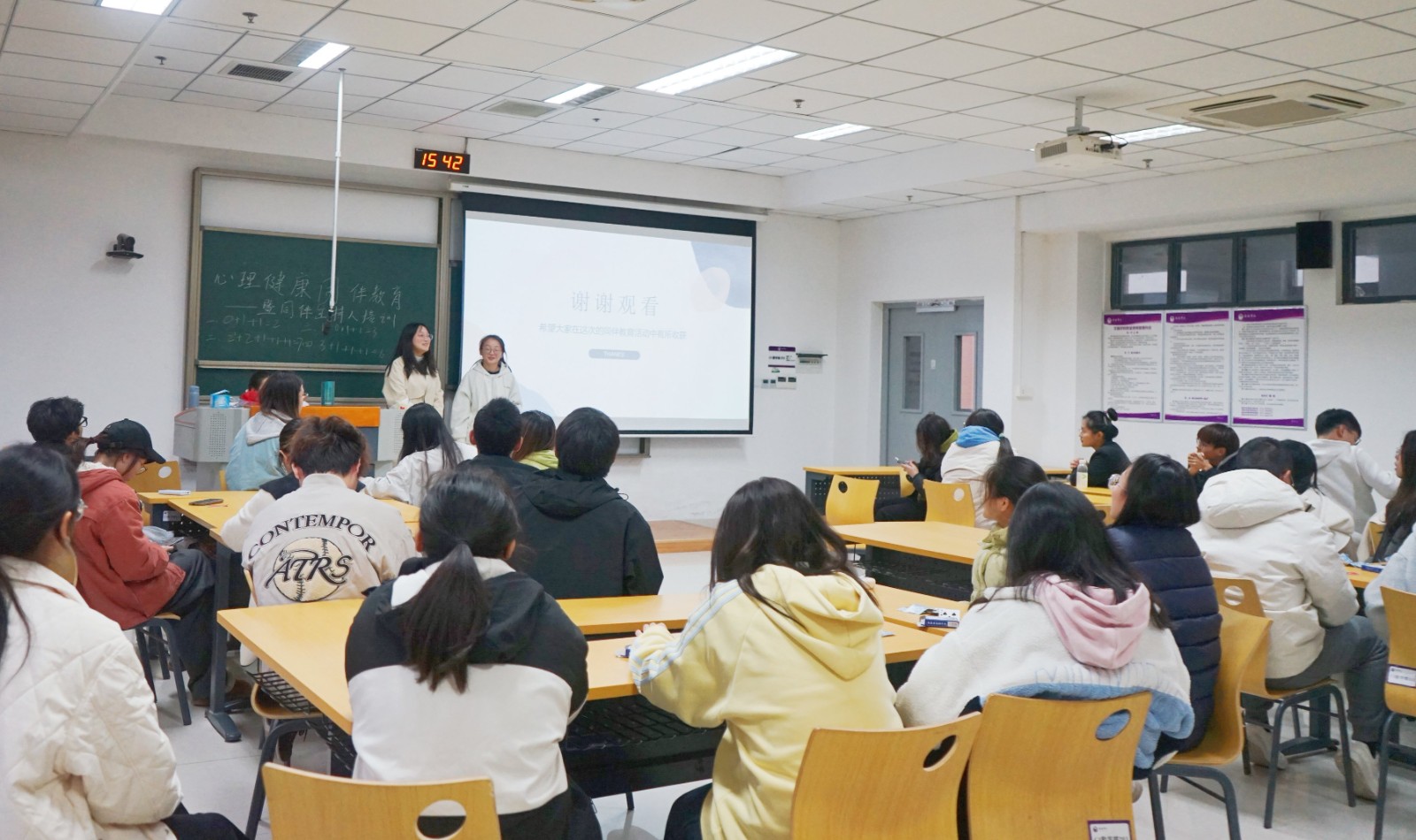 活动伊始,两位主持人进行热身破冰开场,带领同学们增进彼此了解,消除彼此隔阂,让大家以更积极和自信的心态投入本次心理健康主题活动。在心理健康理论讲解环节中,主讲人带领大家参加一个压力小测试游戏,初步了解自己当下的压力程度,接着深入浅出地分享了心理健康相关知识,让大家对心理问题与环境压力的关系有了更深刻的认识。