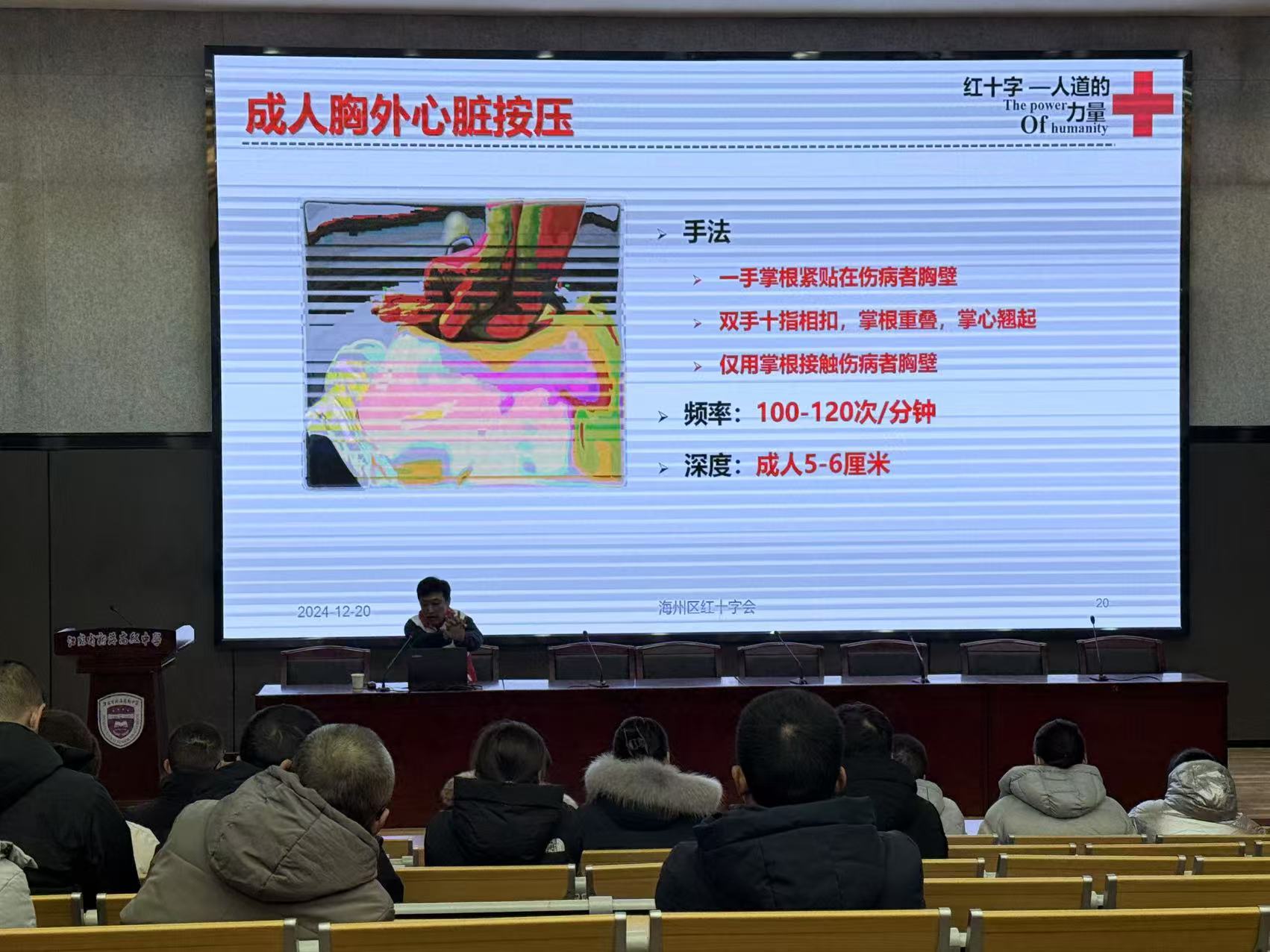 为进一步提升广大师生健康素养、防灾避险和自救互救技能,切实保护师生生命安全和身体健康,12月20日,海州区红十字会进入新海高级中学为体育老师、校医举行应急救护培训。