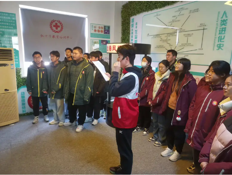 12月5日为“世界志愿者日”学校红会组织高一年级全体学生走进校“红十字生命教育馆”。在生命教育馆的各个展厅,通过红十字志愿者的精心讲解,学生了解了生命进化演变的过程,知道了环境保护对于人类生存和发展的重大意义,也学习了交通安全的常识,并通过模拟“防火防震逃生体验通道”,掌握了应急逃生的技能技巧。在此期间,学校组织各班级学生有序走进“应急救护培训厅”,对学生进行应急救护知识培训。
