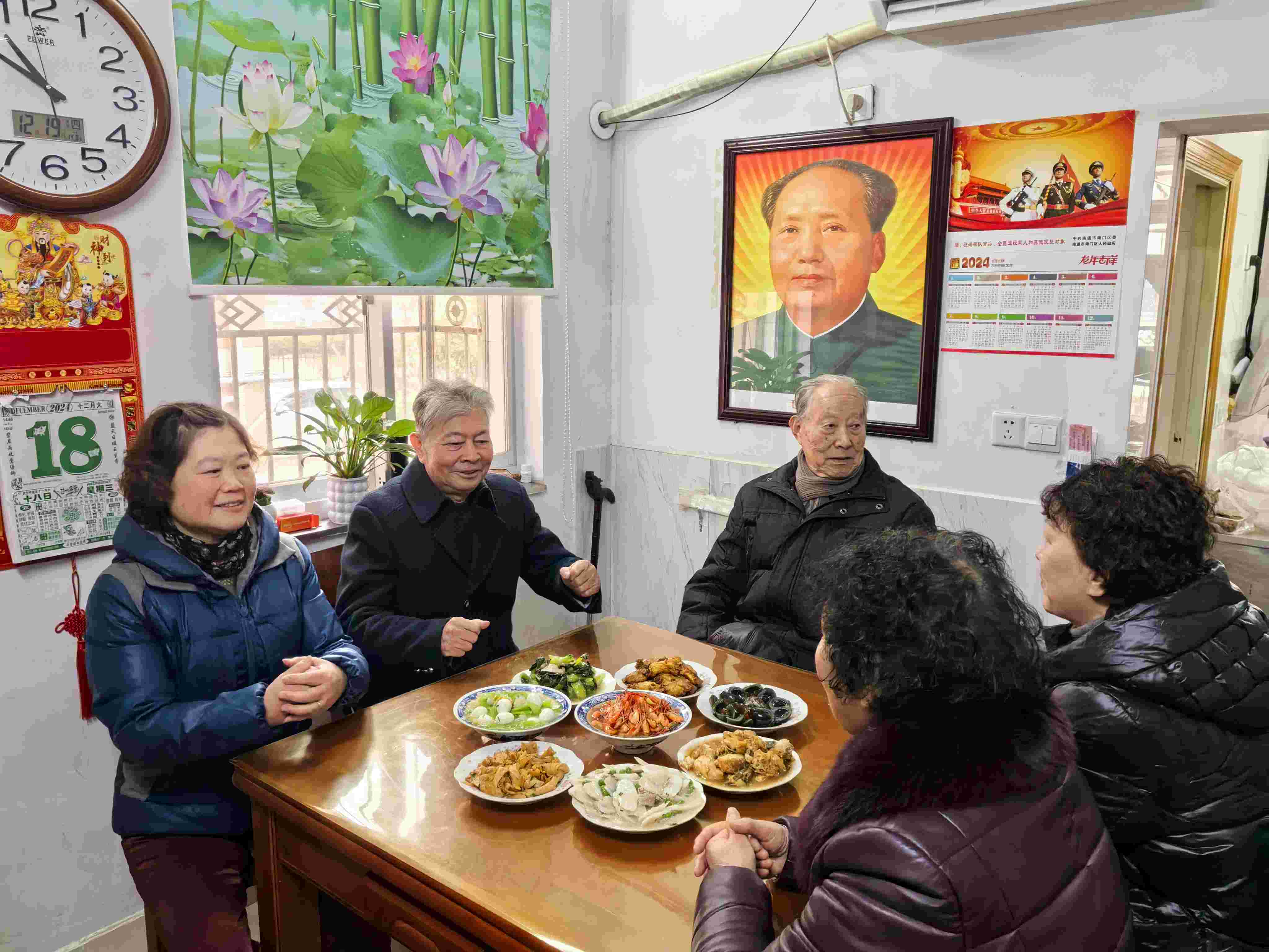 临近中午,光华社区红十字服务站的七位志愿者们,端着从自家做好的拿手好菜纷纷来到了顾老的家中,红烧河虾、青菜炒香菇、红烧带鱼、山药肉片炒豌豆、红烧肉......一道道香喷喷的菜肴陆续装盘端上了桌,香味扑鼻,整个厨房与客厅充满了欢声笑语,到处洋溢着“家”的味道、“家”的温馨。