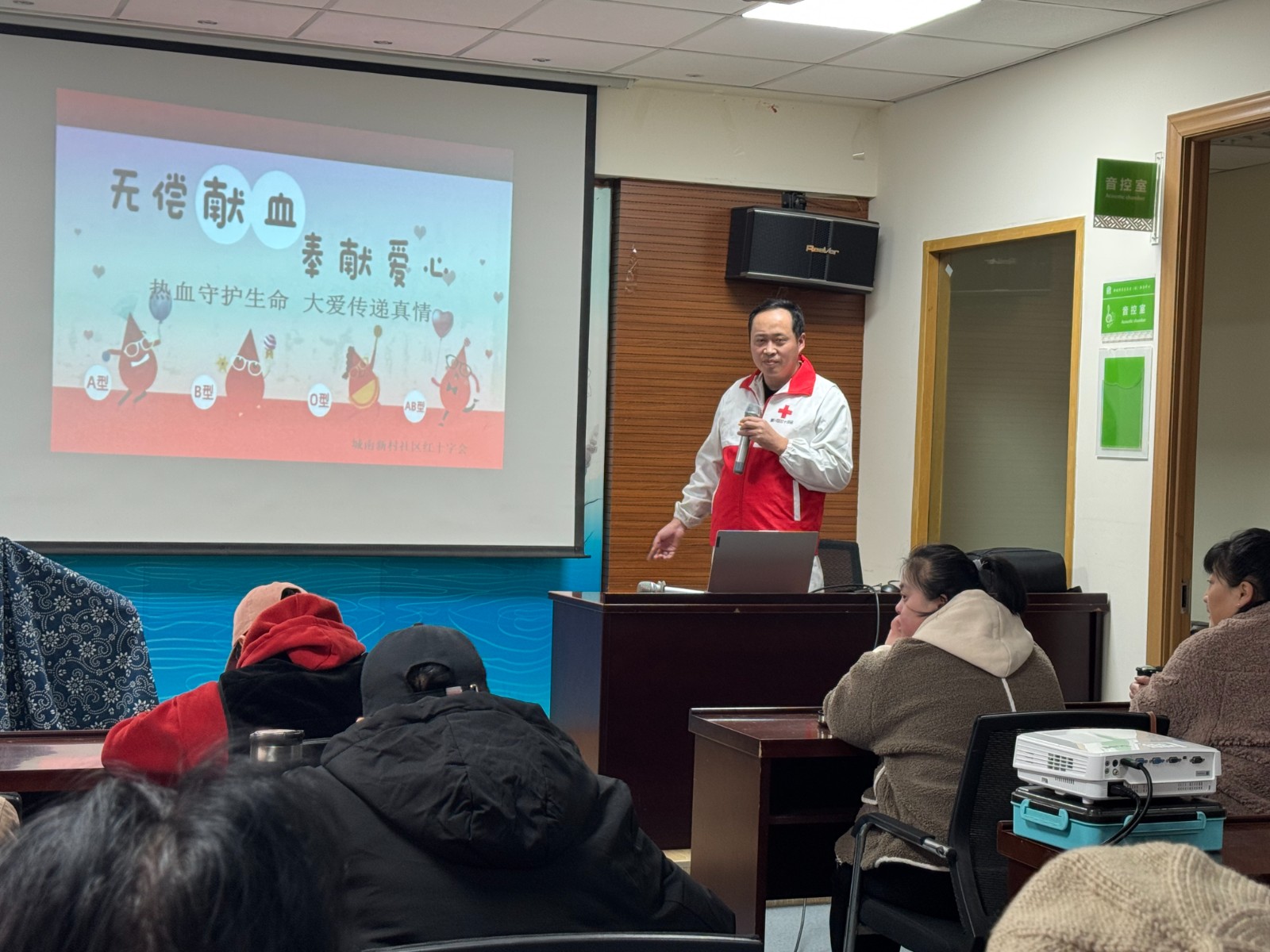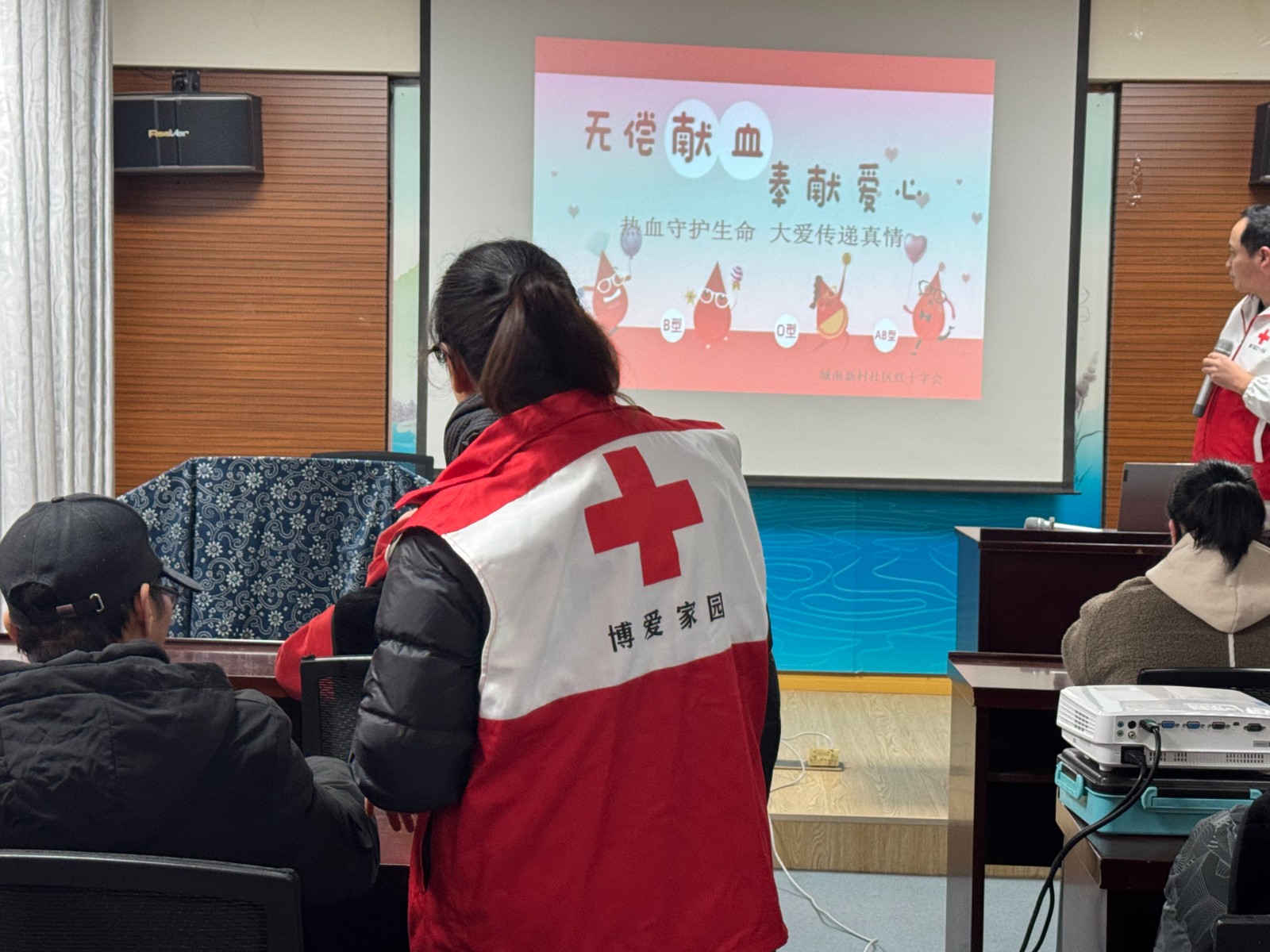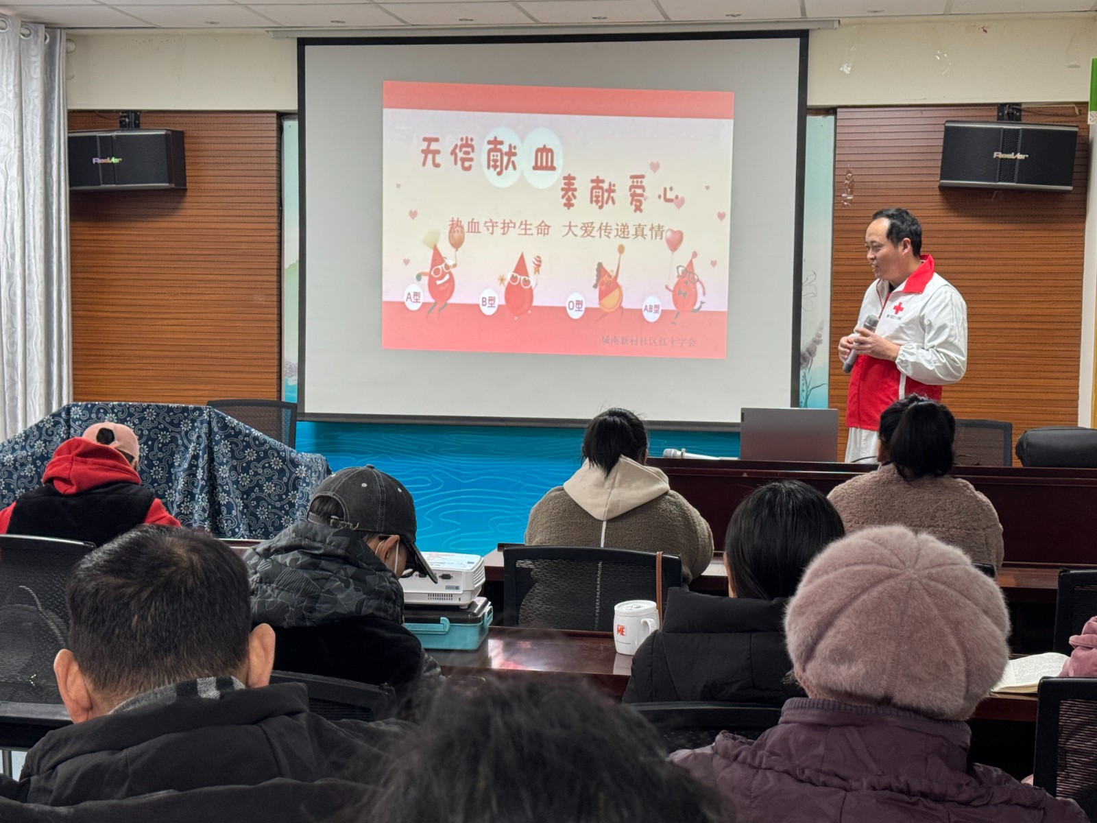 近日,为提高社区居民对无偿献血的认识,激发大家的献血热情,新城桥街道城南新村社区红十字会开展“热血守护生命 大爱传递真情”为主题的知识讲座。