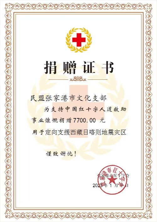西藏灾情,牵动着港城人民的心。1月9日下午,市红十字会收到了一笔来自民盟张家港市文化支部7700元的定向捐赠,用于援助西藏日喀则地震灾区的救援和重建工作,这也是此次西藏灾情第一个捐款的单位;一直热心公益、积极履行社会责任的张家港市新一代企业家商会捐款2万元,“希望通过这次捐赠,能够为定日县的抗震救灾工作贡献一份力量,也呼吁更多企业和个人加入到援助灾区的行列中来。”苏州瑞德顺达科技有限公司也在当天捐献2000元,“希望藏族同胞一切都能好起来。”