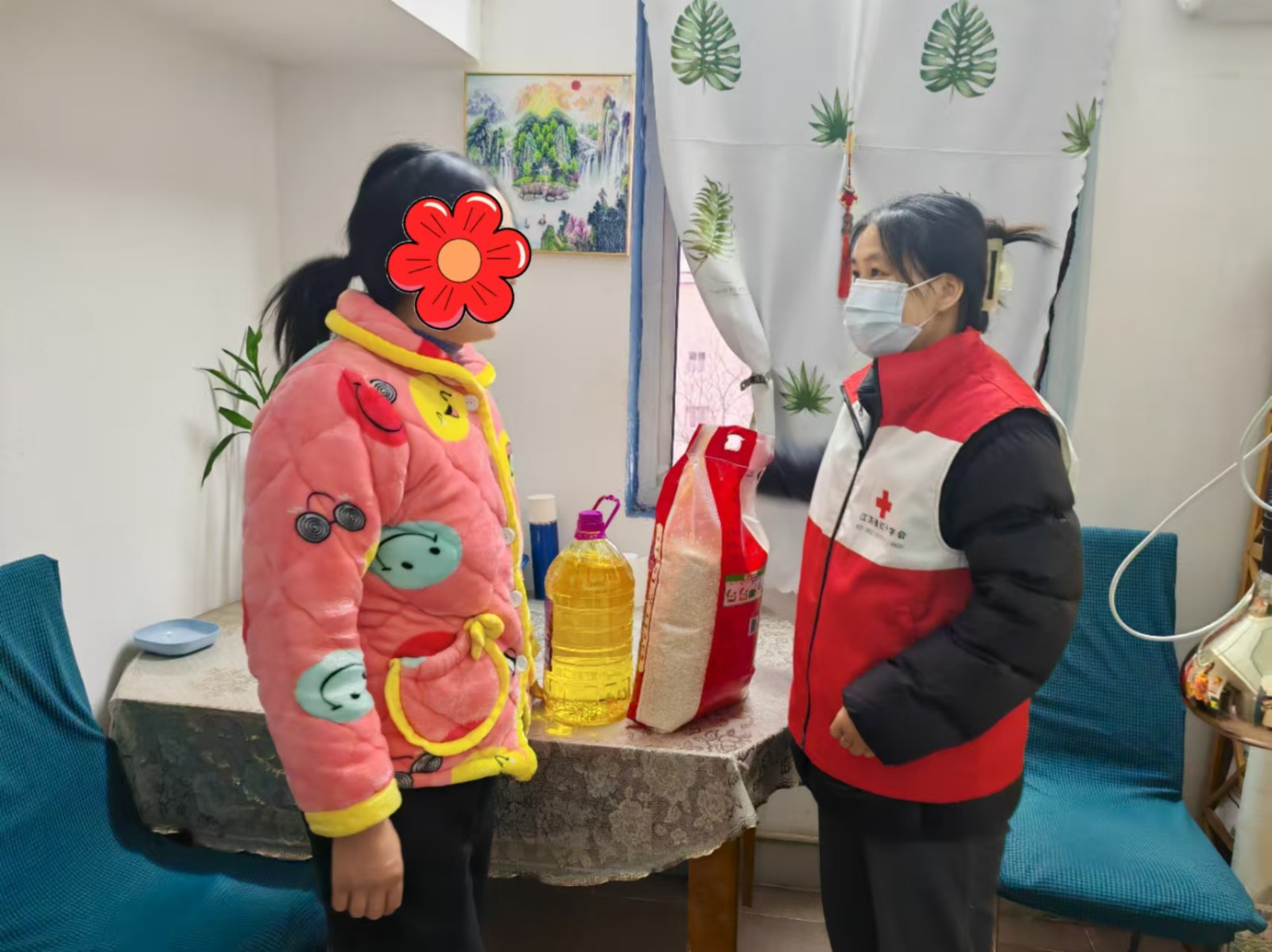 社区红会志愿者登门走访慰问救助对象,向他们发放大米、食用油等生活物资,并为他们送上丰富的“精神食粮”。在与他们深入交谈中,了解他们身体状况及家庭情况,鼓励他们以良好心态面对生活,并叮嘱他们日常生活中用火、用电、用气安全,帮助他们创造安全的生活环境。在退役老兵郑伯伯家中,志愿者详细地了解了老人目前身体状况、生活情况及家庭状况,并向他们致以节日的问候,感谢他们为国家、为人民做出的贡献。