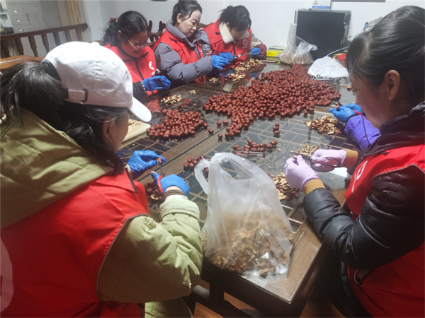 活动前,志愿者们齐聚一堂,全身心投入到食材的准备工作中。她们仔细地为红枣去核、给桂圆去壳,认真清洗各类食材,逐一浸泡,每个步骤一丝不苟,只为煮出一锅美味又营养的腊八粥。
