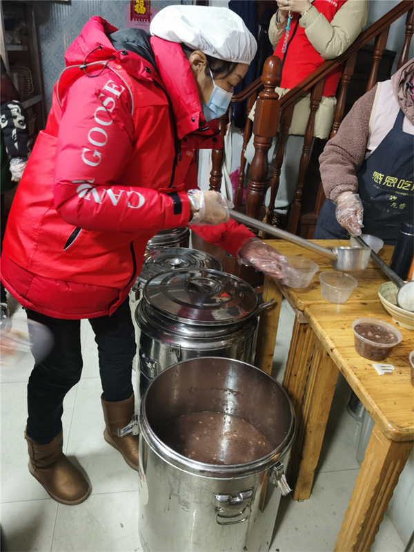 尽管天气寒冷,但志愿者们都早早来到服务点,迅速投身于各自的工作岗位。打粥、发粥,大家分工明确、默契协作,将一碗碗热气腾腾、饱含爱心的腊八粥,有序地送到市民、老人与孩子的手中。