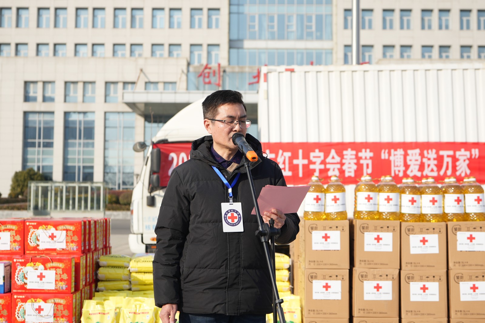 活动现场,市红十字会党组书记、常务副会长杨爱兵,为镇区红会代表发放物资,由此2025年“博爱送万家”活动正式开启。