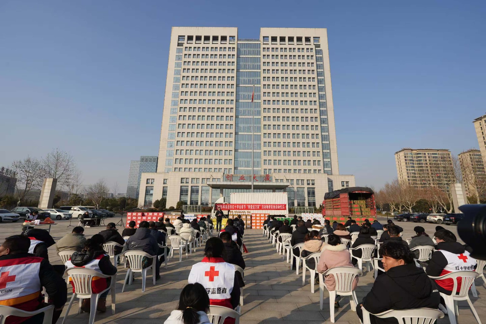 1月18日,2025年东台市红十字会春节“博爱送万家”活动物资发放启动仪式,在高新区创业大厦广场举行。市政府分管主任、市红十字会副会长缪旭伟,市红十字会党组书记、常务副会长杨爱兵出席启动仪式,溱东、梁垛、三仓、时堰镇分管领导及本次活动捐赠商会企业代表,各镇区红十字会、红十字博爱家园、新领域红十字会和“爱心妈妈”等代表参加,启动仪式由市红十字会秘书长何斌主持。