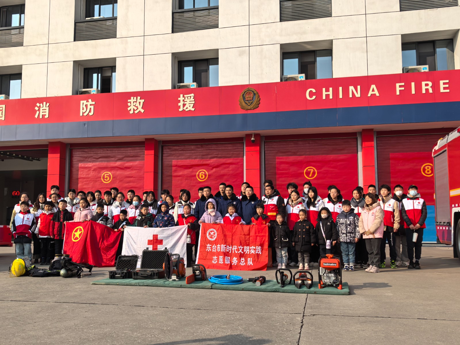1月21日,东台团市委、市新时代文明实践中心、市红十字会组织50余名红十字青少年在绿源消防救援站举行了一场别开生面的消防安全实践活动。青少年们在红十字志愿者和消防队员的带领下,走进消防队,近距离接触消防员,亲身体验与学习消防安全知识。