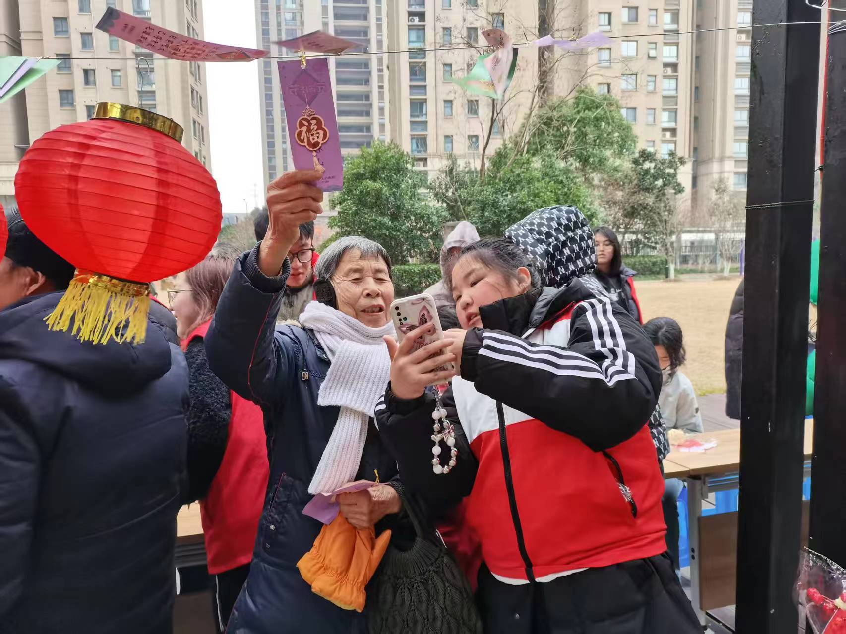 活动当日,社区工作人员和志愿者们在博爱长廊认真做好了准备工作。挂着谜面的彩纸随风飘荡,各种有趣的灯谜引得大家争相猜测,笑声不断。大家手里拿着小奖品,喜笑颜开,为元宵节的到来增添了一道独特的欢乐风景线。