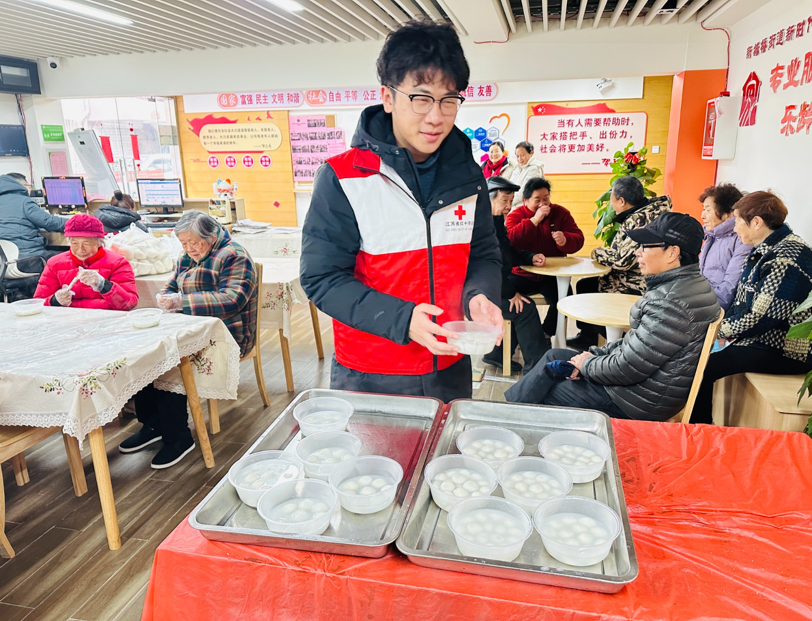 元宵佳节来临之际,新城桥街道城南新村社区红十字会组织了一场温暖人心的包汤圆活动。志愿者们齐聚一堂,有的揉面,有的拌馅,大家干劲十足。糯米粉在手中翻滚,不一会儿,一个个圆润饱满的汤圆摆满了盘子。志愿者们分工明确,将一颗颗饱含爱心的汤圆,送到辖区残疾人家庭、孤寡和空巢老人等困难群体手中,用实际行动传递社区关爱,弘扬红十字“人道、博爱、奉献”的精神。