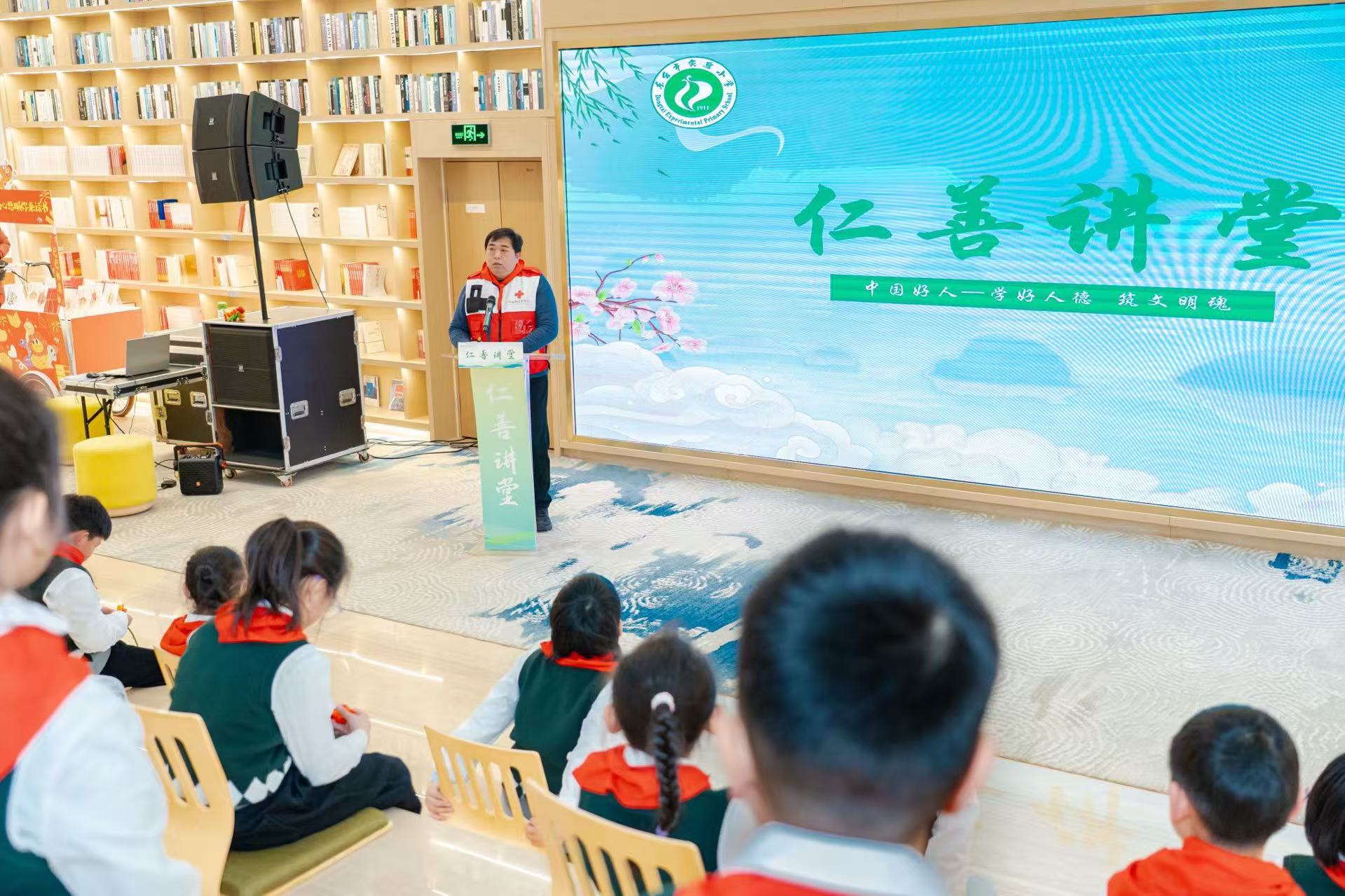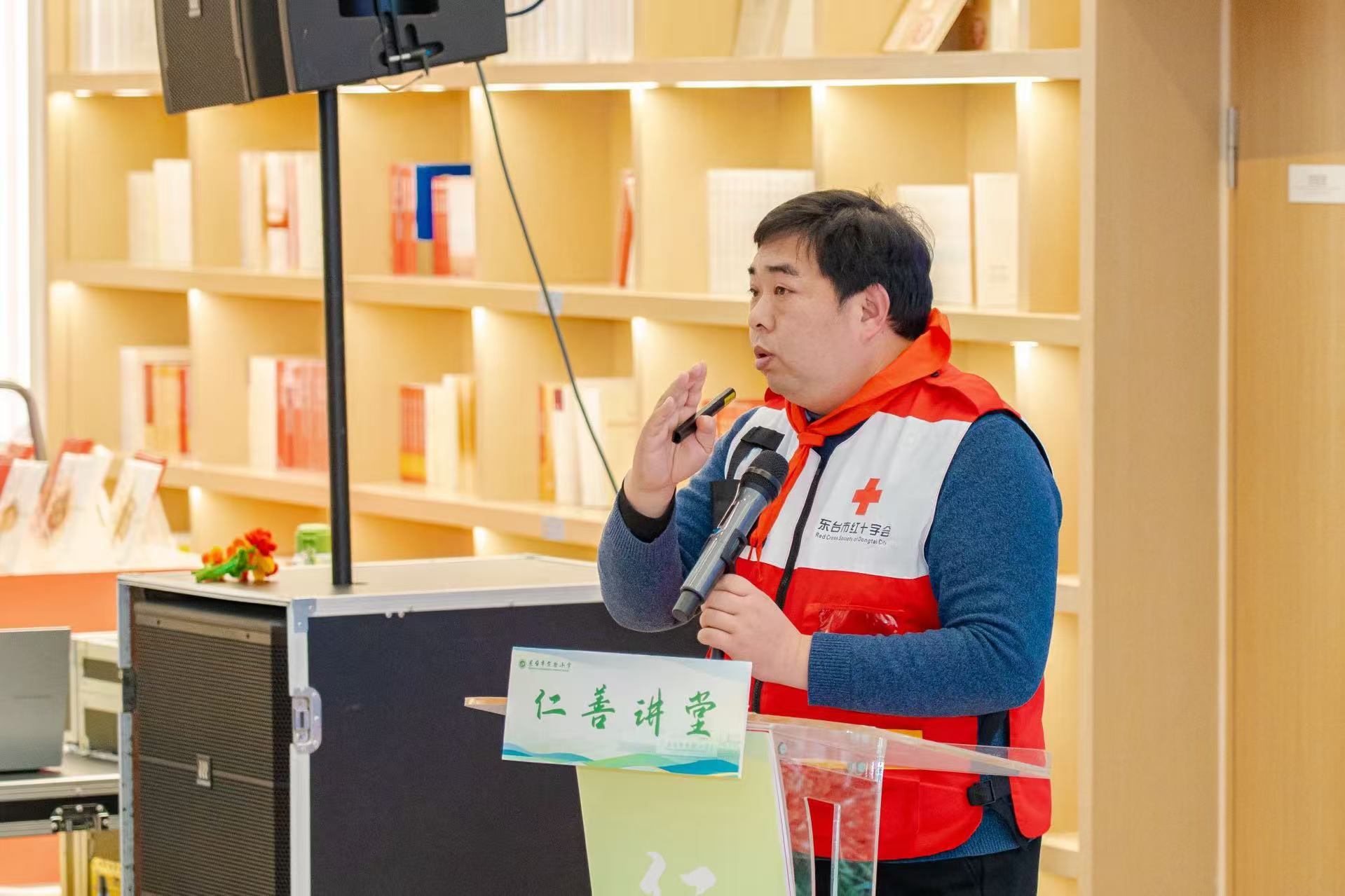 近日 ,中国好人、红十字会志愿服务大队副大队长、救援队队长常勇走进图书馆仁善讲堂,为学生带来一场“志愿服务常出彩,应急救援勇担当”宣讲活动,传递榜样力量。 常勇以朴实无华的语言、真挚动人的情感,讲述了自己多年来在平凡岗位上默默奉献、在生活中乐于助人的点滴以及红十字救援队的故事。这些看似平凡却又充满力量的事迹,深深打动了在场的每一位听众,让大家深刻感受到榜样的力量就在身边。