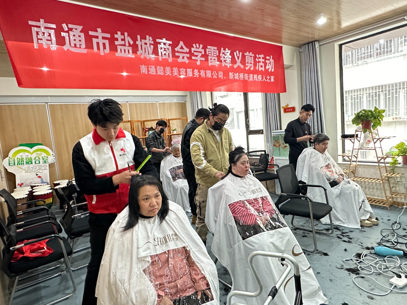 活动期间,来自盐城商会的志愿者们早早地来到残疾人之家为辖区残疾人、老年人进行理发。他们熟练地拿起理发工具,为他们精心修剪发型。他们耐心询问残疾人、老人的需求,根据他们的喜好与脸型设计合适的发型,动作娴熟又轻柔。不一会儿,原本凌乱的头发变得整齐利落,面容也焕发出新的光彩。大家对志愿者的手艺赞不绝口,现场充满欢声笑语。