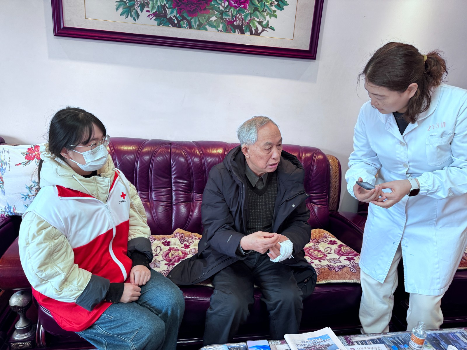 广场义诊活动结束后,医生志愿者马不停蹄地前往辖区行动不便的老人和退役军人家中,开展上门义诊服务。为他们进行身体检查,详细询问身体状况和病史,为他们送上贴心的医疗关怀。“这样的上门义诊真的很好,让我们足不出户就能享受到优质的医疗服务。”退役老兵包善昌感慨地说。