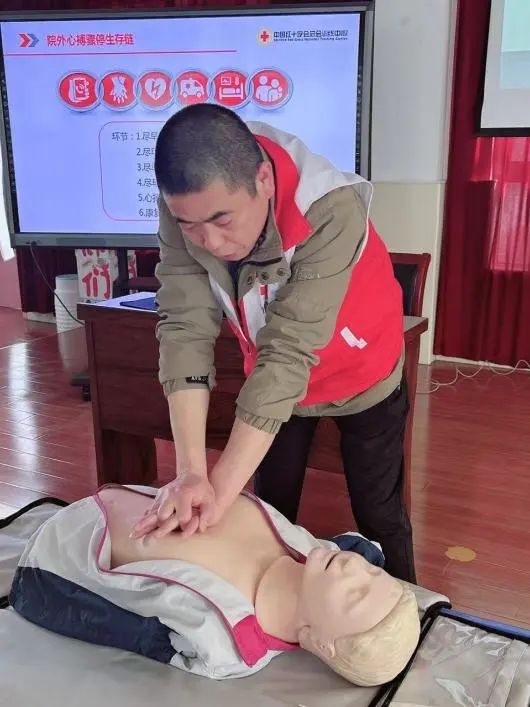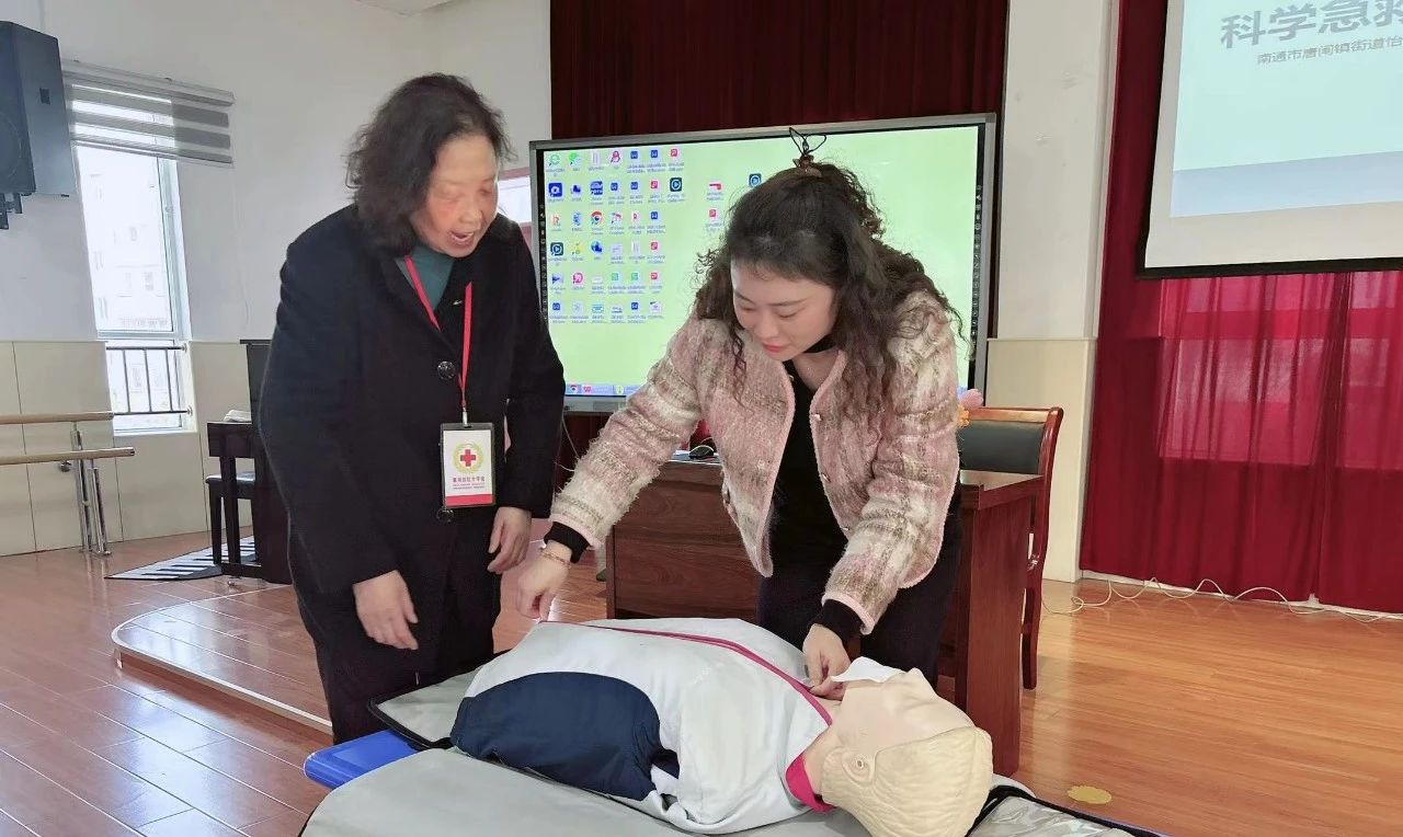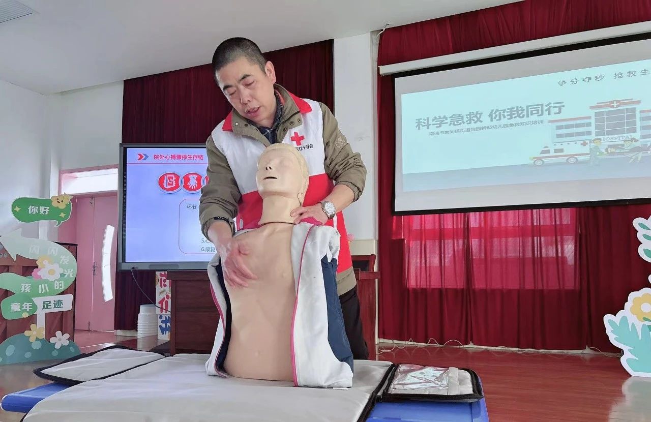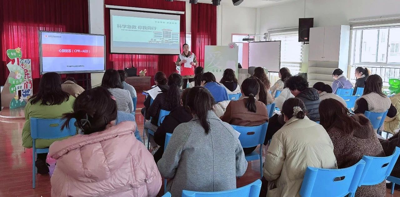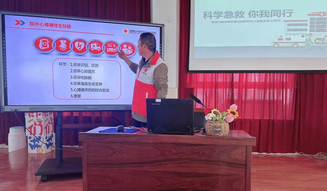 生命安全无小事,掌握基本的救护技能对于每个人而言都至关重要。无论是日常生活中的小意外,还是突发的紧急事件,及时的救护处理都能有效减轻伤害,甚至挽救生命。为进一步提升安全教育质量,着力增强广大师幼健康素养,提升应急避险和自救互救能力。根据市教育局、市红会关于在园教师群体开展应急救护持证培训的通知要求,唐闸镇街道怡园新邸幼儿园近日特邀红十字会急救培训讲师俞飞主任为全园教职工进行了应急救护培训,为幼儿的健康成长保驾护航。