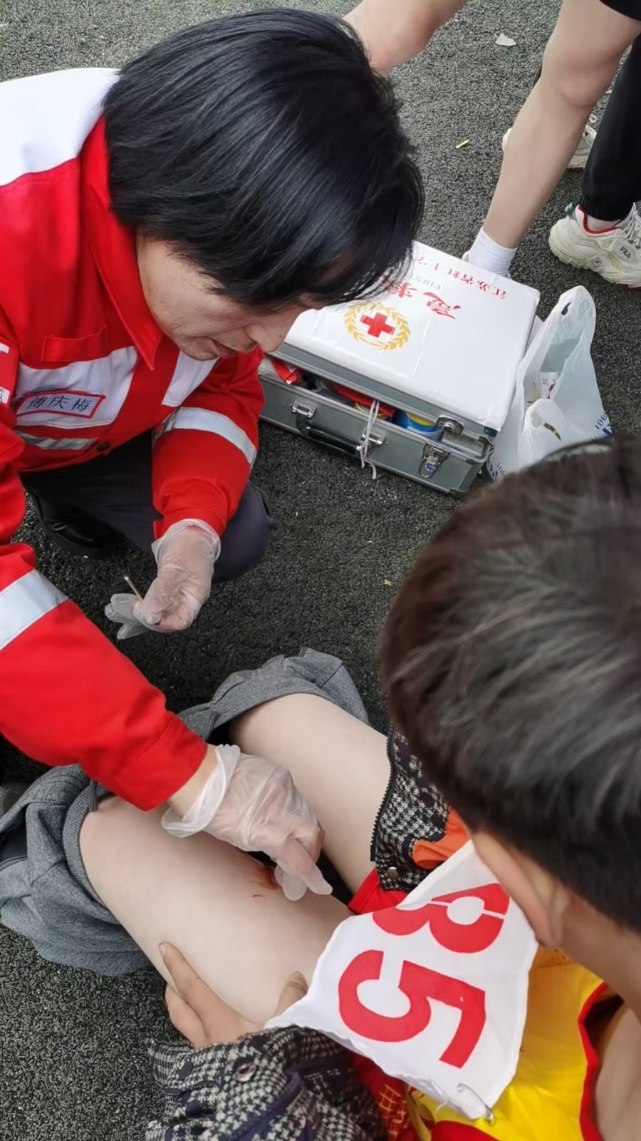 本次运动会按照学段、年龄分为6个组别,涵盖了长短跑、接力跑、跳高、跳远、实心球等各类田径项目。比赛现场高潮迭起,加油声此起彼伏,运动员们顽强拼搏、奋勇争先。赛事期间红十字救援队全程参与赛事应急保障,比赛现场分别设置应急处置点,配备应急救援队员,为运动员、裁判员、志愿者、观众提供应急救护保障。每场配备AED便携式自动体外除颤仪1台、并提供绷带、三角巾、消毒药品、酒精等急救器材和药品,为多名运动员进行了伤口处理,确保了参赛选手的人身安全。