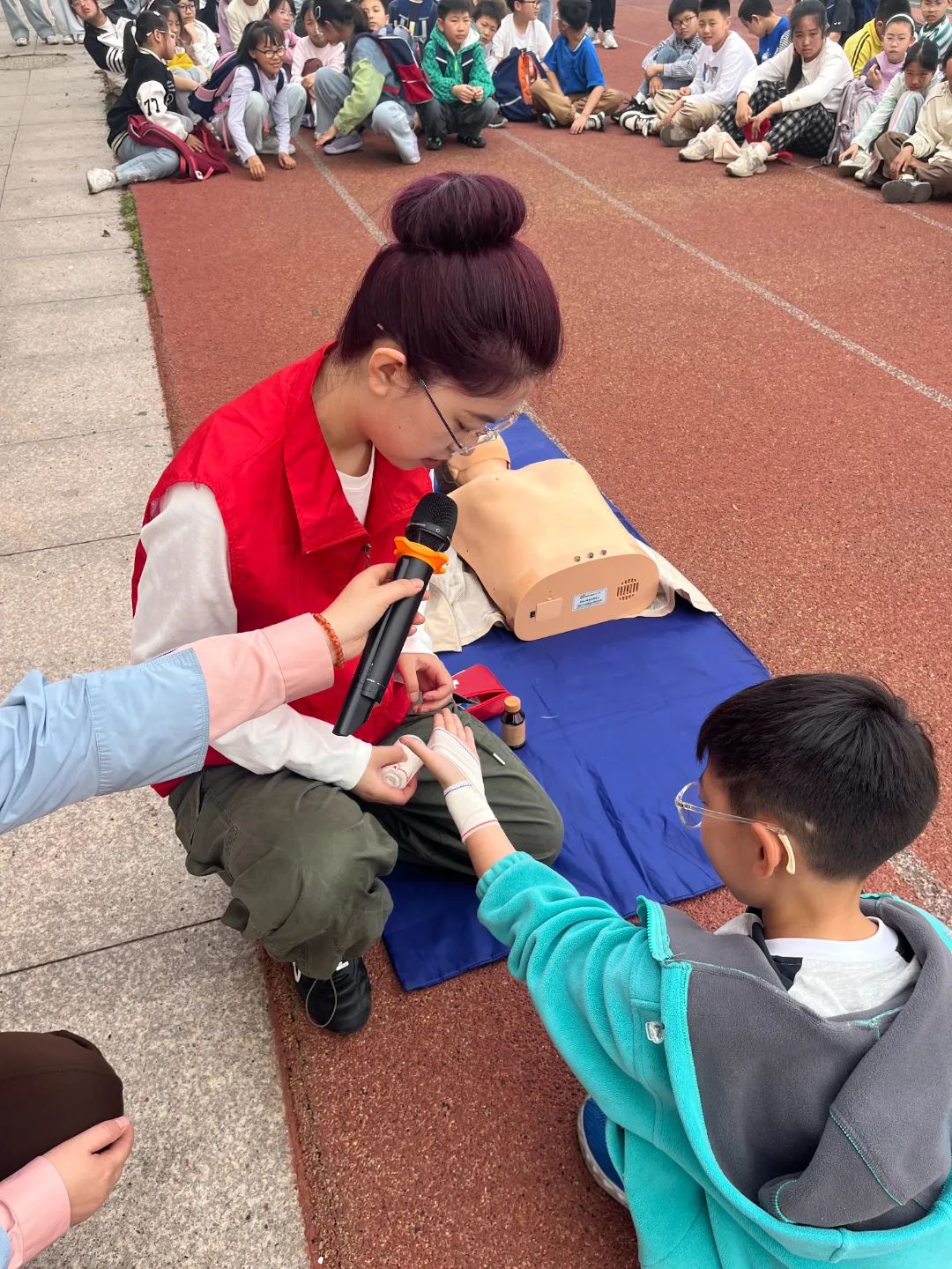守护青春之美,点亮生命之光。在这个充满活力与挑战的时代,青少年作为社会的未来和希望,他们的健康与安全始终牵动着每一个人的心。为了进一步提升学生的自救互救能力,增强校园安全意识, 5月9日下午,明珠街道红十字会携手泰州市鲍徐小学开展了“生命守护,‘救’在身边”应急救护培训活动。五年级300多名师生在操场参加了这场生动实用的生命教育课。 这一活动不仅为校园安全筑起了一道坚实的防线,更为青少年的健康成长提供了有力保障。