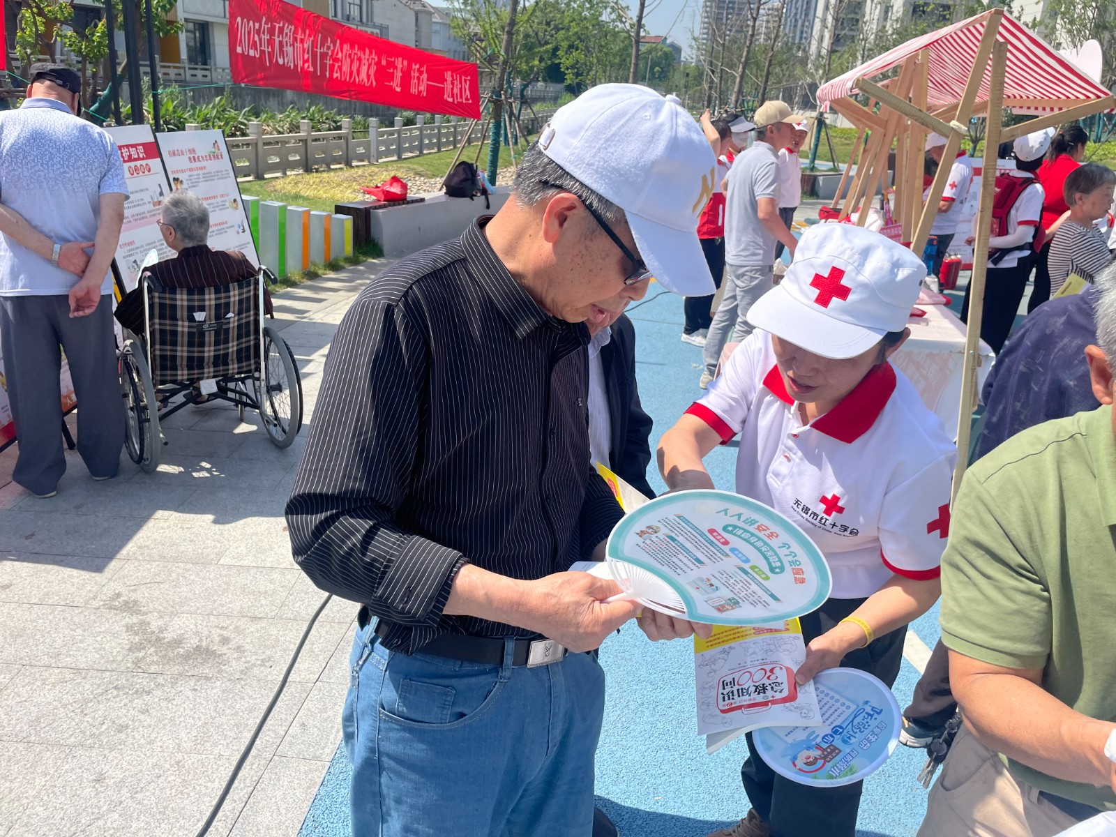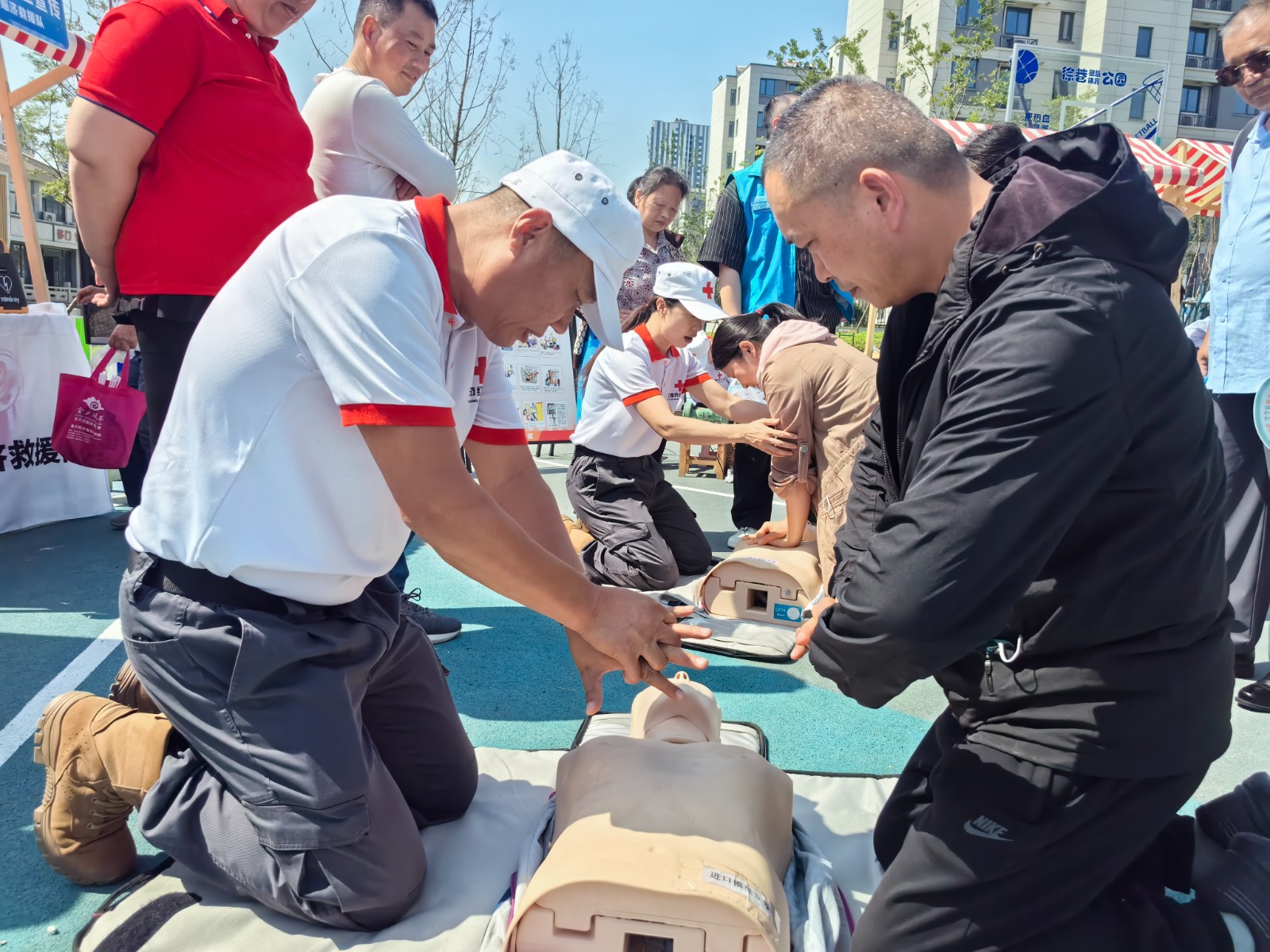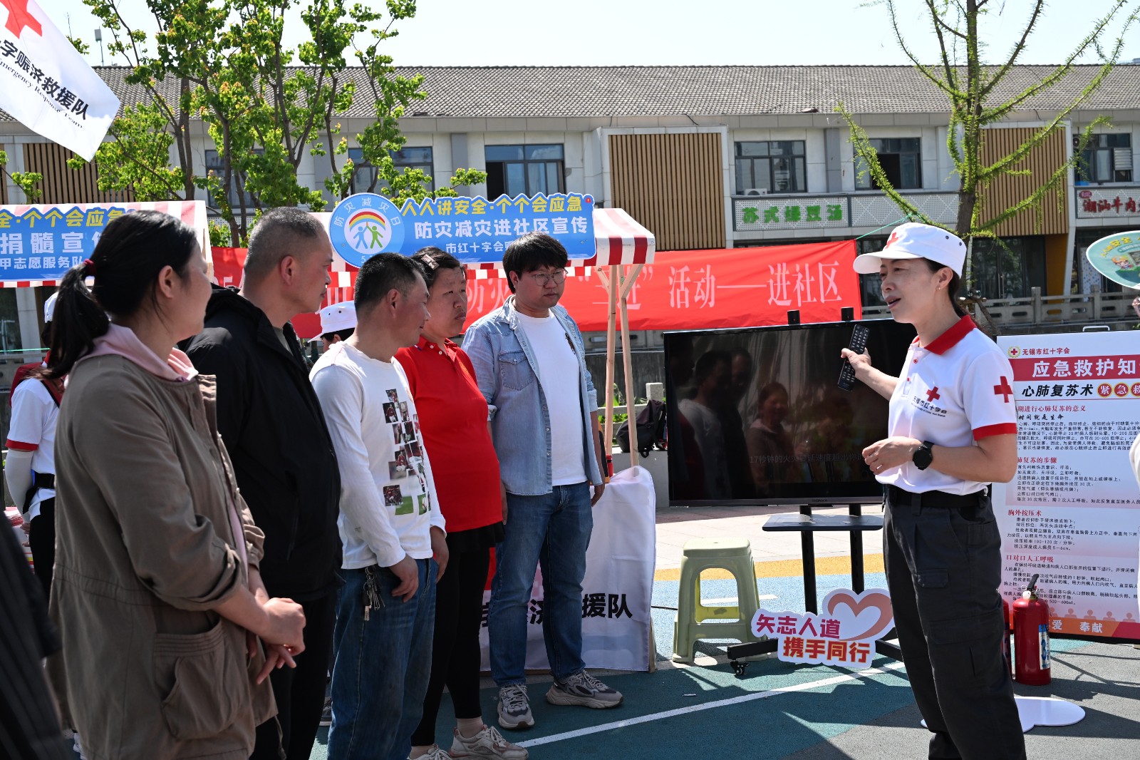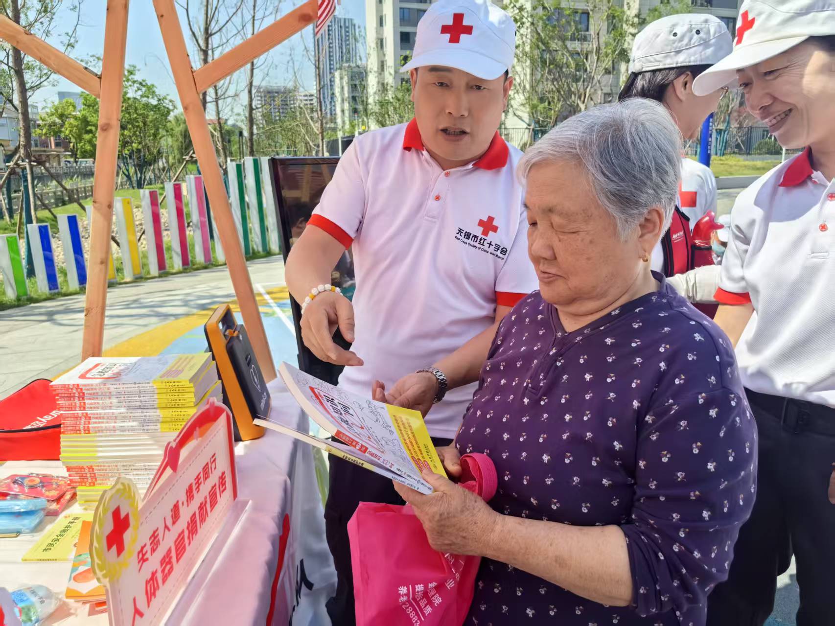 5月12日,无锡市红十字赈济救援队在梁溪区广丰社区博爱广场开展以“人人讲安全、个个会应急——排查身边灾害隐患”为主题的防灾减灾活动。队员们通过理论宣讲、实操教学等形式,为居民送上“沉浸式”安全课,近100名居民参与。