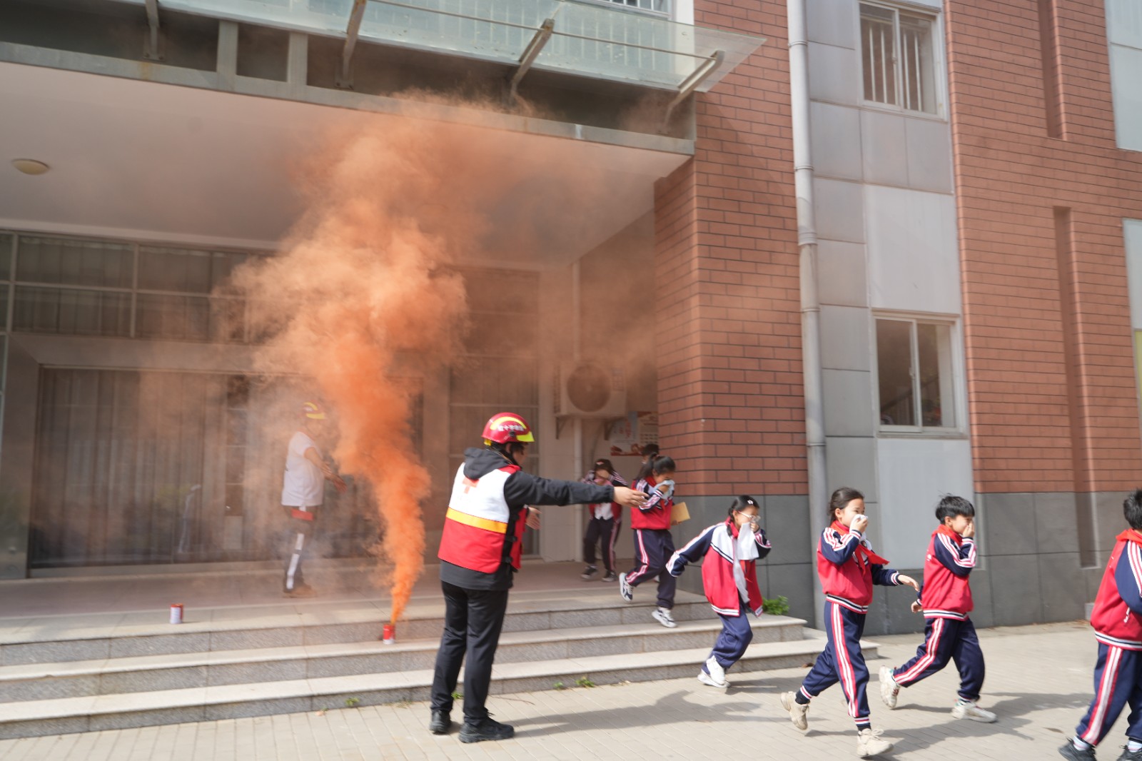 为师生们详细演示灭火器的正确使用方法。从讲解灭火器的种类、适用范围,到示范如何提拔握压、精准灭火,每一个步骤都清晰明了,让师生们对火灾应对有了更直观的认识。并组织师生开展消防疏散演练。随着警报声响起,同学们在老师的引导下,用湿毛巾捂住口鼻,弯腰低姿,按照预定疏散路线迅速、有序地撤离到操场安全区域,整个演练过程紧张有序,达到了预期效果。