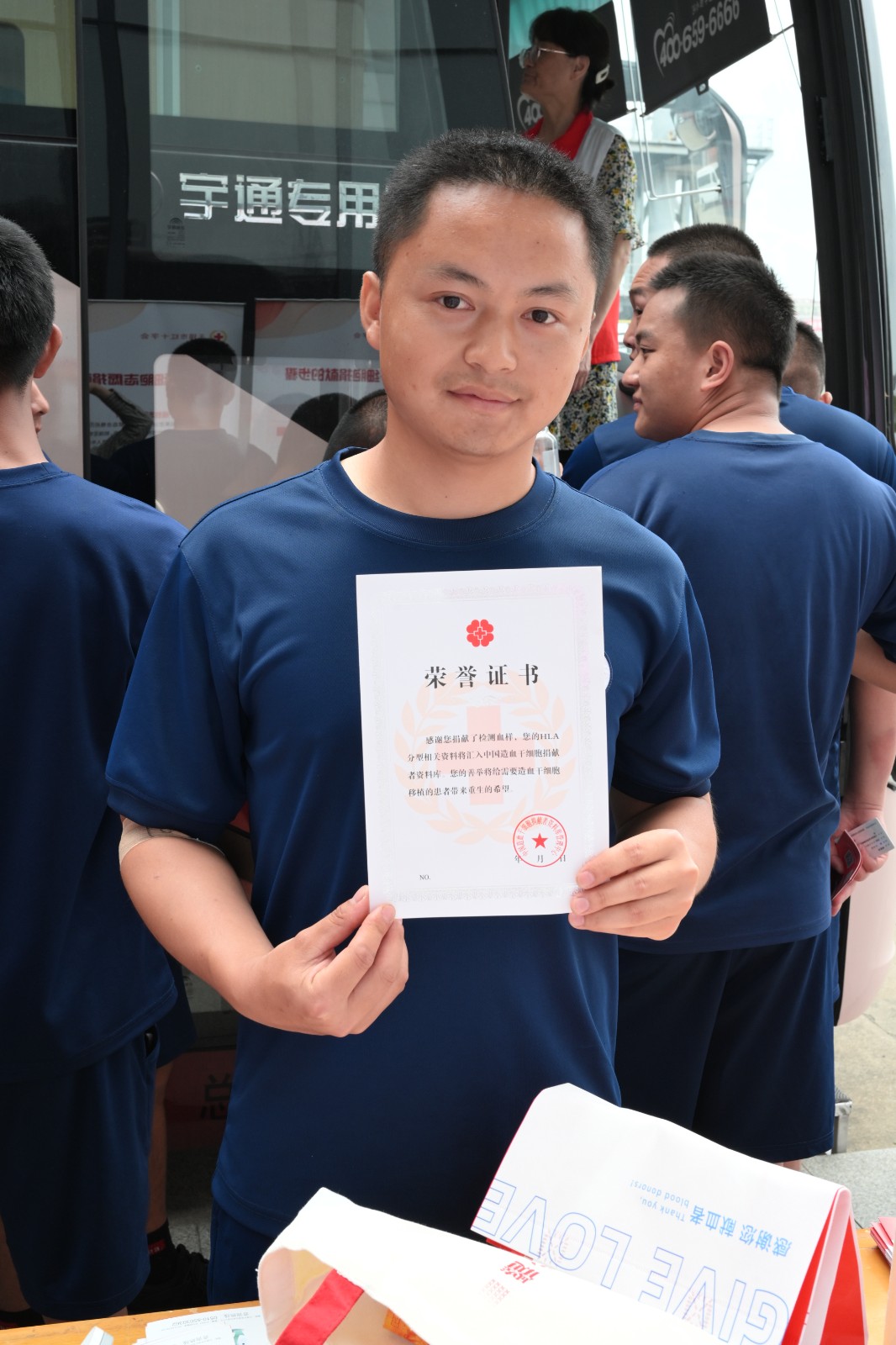 2025年5月20日,无锡市红十字会携手无锡市中心血站,走进无锡市消防救援支队,共同开展无偿献血暨造血干细胞捐献宣传采样公益活动。此次活动,超过五十名消防战士毫不犹豫地挽起袖子,捐献出珍贵的血液,同时,许多消防员主动登记,成为了中华骨髓库的一员。他们用那一抹抹鲜艳的“火焰蓝”,为无数生命注入了希望与活力,以实际行动深刻诠释了“人民利益高于一切”的崇高使命与责任担当。 活动当天,消防队的训练场上热闹非凡,消防队员们早早便在现场排起了长队,大家争先恐后,踊跃报名参加。无锡市红十字会的志愿者们和无锡血站的工作人员,有条不紊地引导队员们完成信息登记、健康检查、血液初筛等一系列流程。 不少消防队员已是多次无偿献血的“老将”,在献血时,他们熟练地挽起袖子,脸上洋溢着自豪与满足的笑容。“作为消防员,我们平时守护人民生命财产安全,献血也是我们为社会贡献力量的一种方式,能帮助到有需要的人,觉得特别有意义。”一位参与献血的消防员说道。 而在造血干细胞知识科普展区前也围满好奇的“蓝精灵”。无锡市红十字会的志愿者耐心细致地为他们讲解造血干细胞的科普知识,从捐献的重要意义到具体流程,再到对身体的影响,只要队员们有疑,无不详尽解答。许多队员在深入了解后,纷纷觉得自愿加入中华骨髓库,誓为那些饱受血液疾病折磨的患者带去生命的曙光。“虽然未来的配型结果尚未可知,但能为他人争取到一份生的可能,我觉得无比值得。”一名刚刚完成造血干细胞捐献报名采样的消防员坚定地说。 据统计,本次活动共有52名消防队员成功献血,献血总量达15800毫升;同时,有52名队员自愿加入了中华骨髓库,完成了造血干细胞捐献报名采样。这些热血与爱心,将成为无数生命的希望之光。 无偿献血和造血干细胞捐献都是崇高的公益事业,它承载着无数生命的希望。无锡市红十字会此次走进消防救援支队开展活动,不仅得到了消防队员们的积极响应,也在社会上引起了广泛关注,起到了良好的示范作用。希望未来有更多的人能够加入到这个爱心队伍中来,用热血传递生命的希望,让爱与温暖在社会中流淌 。