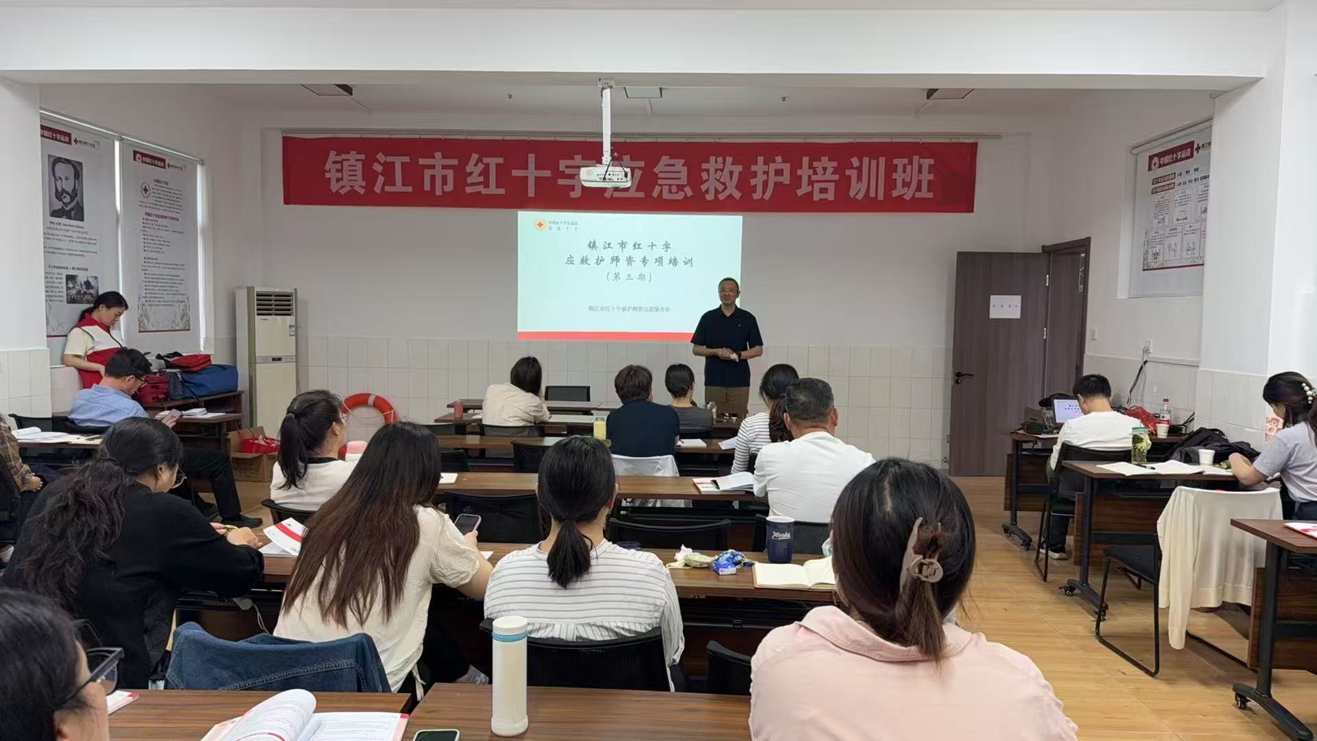 6月1日,镇江市红十字救护师资志愿服务队在市红十字会培训教室组织开展第3期救护师资专项集训。尽管当天大雨倾盆,但来自市直属、京口区、润州区、丹徒区、经开区及扬中市的30多名红十字救护师资仍冒雨到场,积极参与培训。