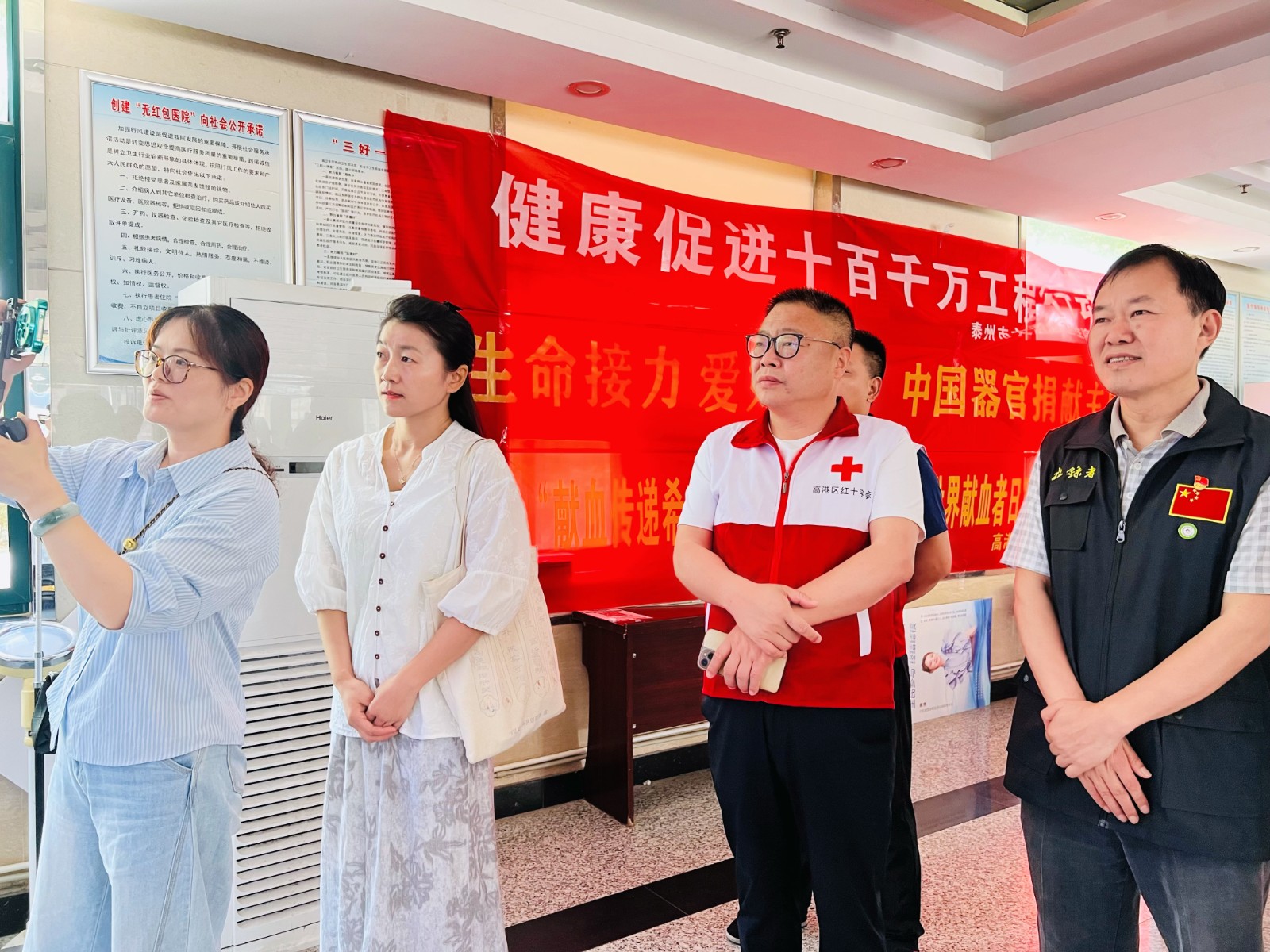 为弘扬“人道、博爱、奉献”的红十字精神,推动器官捐献与无偿献血公益事业发展,6月11日,高港区红十字会联合大泗镇红十字会、美德善行促进会、中国公益记录者、点点爱心等公益组织在大泗镇卫生院开展宣传活动,通过政策宣讲、案例分享、志愿登记等形式,呼吁群众积极参与公益事业。