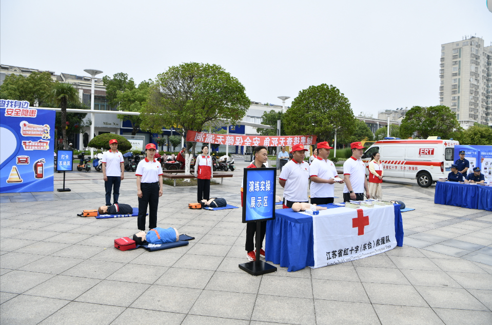 6月14日上午,市安委会办公室联合市应急管理局、市红十字会、省红十字(东台)救援队等20多个部门单位在好人广场举办的安全宣传咨询日活动现场。今年6月是全国第24个、全省第32个“安全生产月”,主题是“人人讲安全 个个会应急——查找身边安全隐患”。