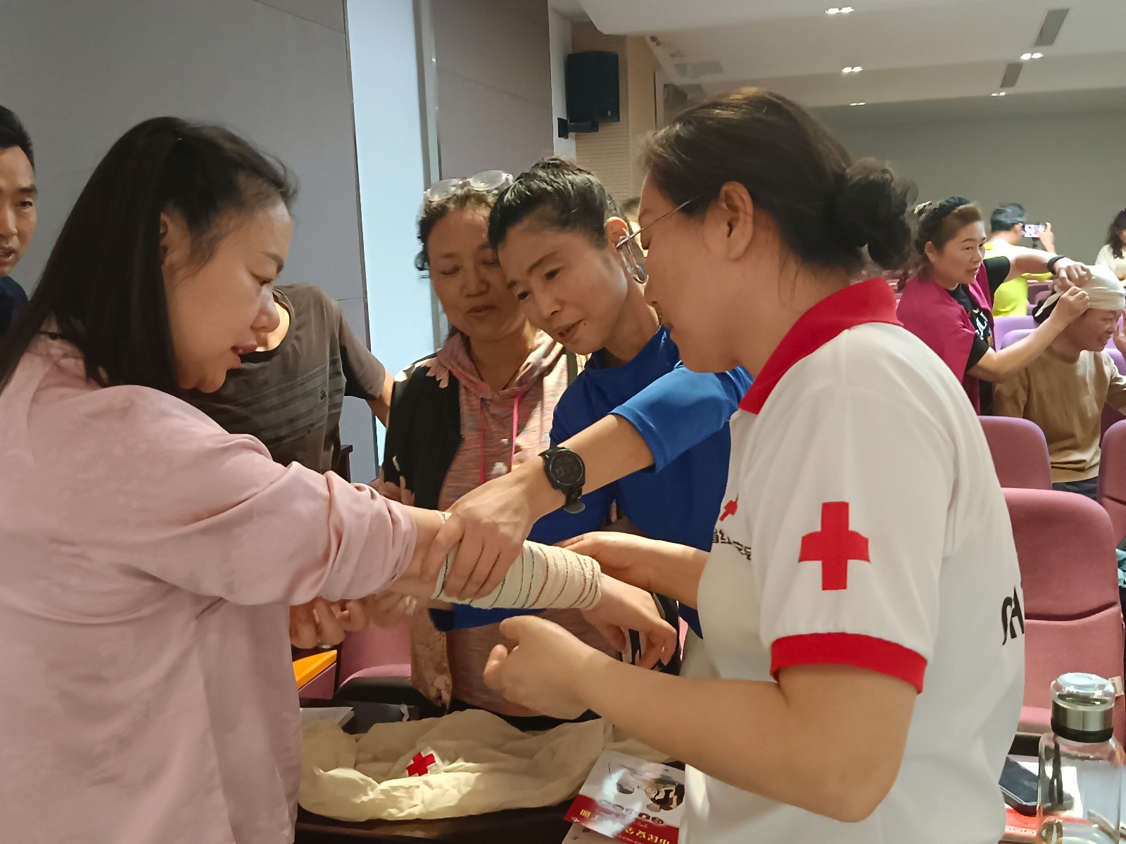 为增加急救知识储备,保障户外安全,23日,“兰花草”登山协会举办急救知识培训,培训内容为心肺复苏、外伤处置及包扎技术等知识,参训人员超50人。句容市红十字会救护培训讲师沈云霞、陶金枝为大家讲解急救知识并指导实操。