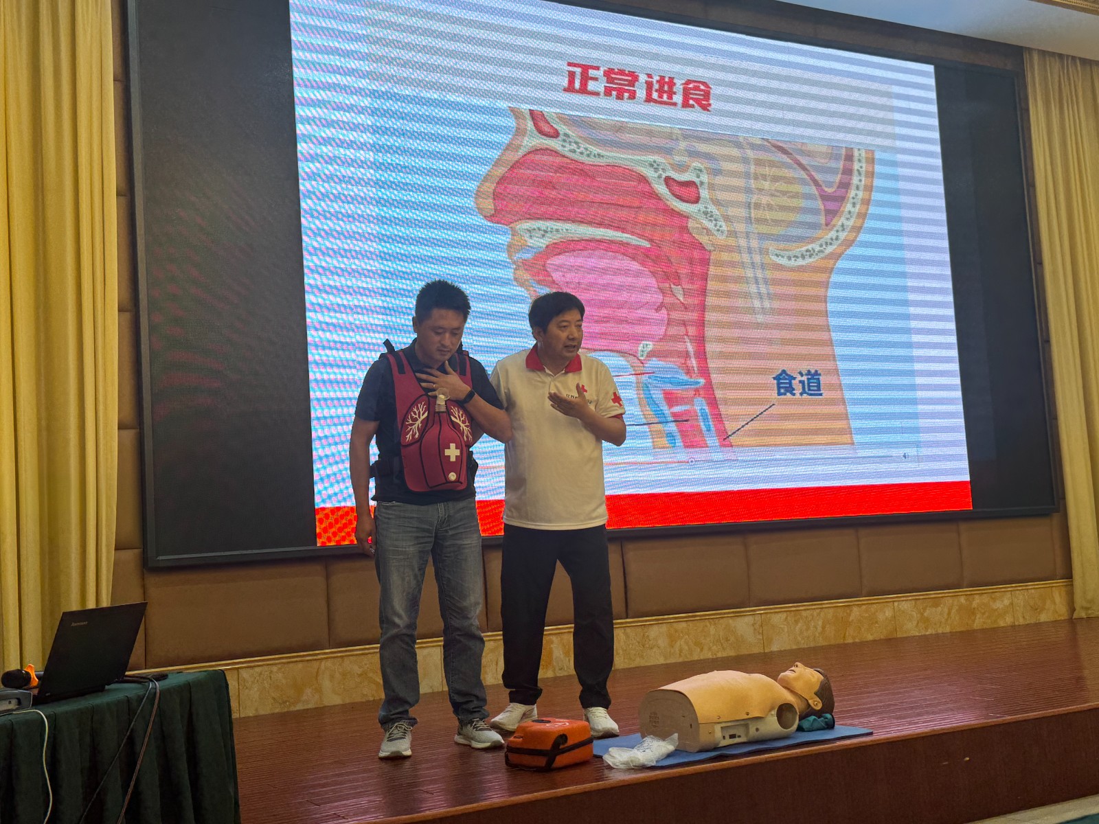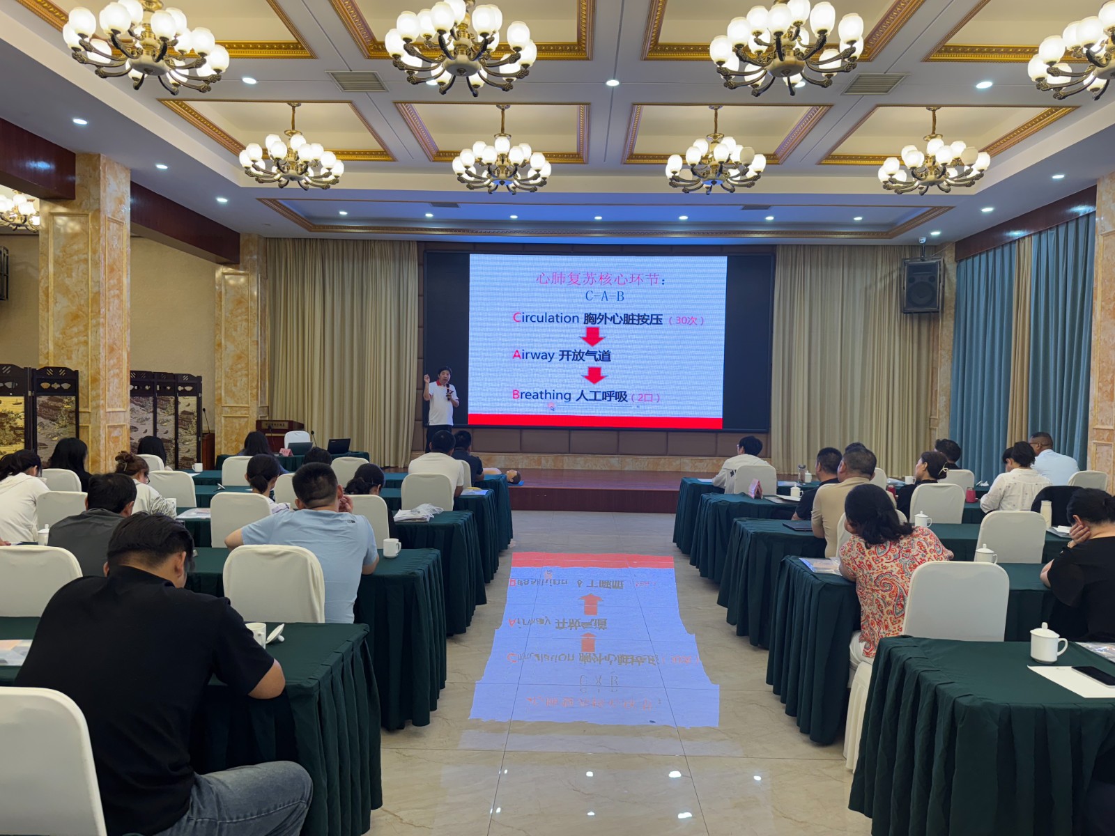 应急救护培训师围绕心肺复苏术、AED推广使用、应对汛期突发事件(水涝灾害、工程塌方、环境污染、公共卫生等)自救互救策略、其他意外伤害(触电、溺水等)应急救援等开展应急救护技能培训。