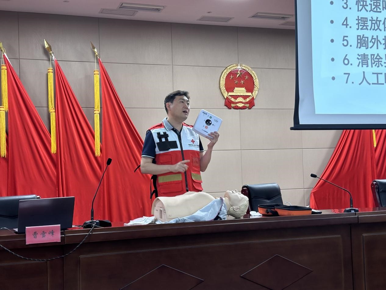 崇川区救护培训专业师资曹雪峰老师详细讲解了心肺复苏、自动体外除颤器(AED)使用、创伤救护以及常见急症、意外伤害的应急处置,提升现场人员应急救护专业能力。