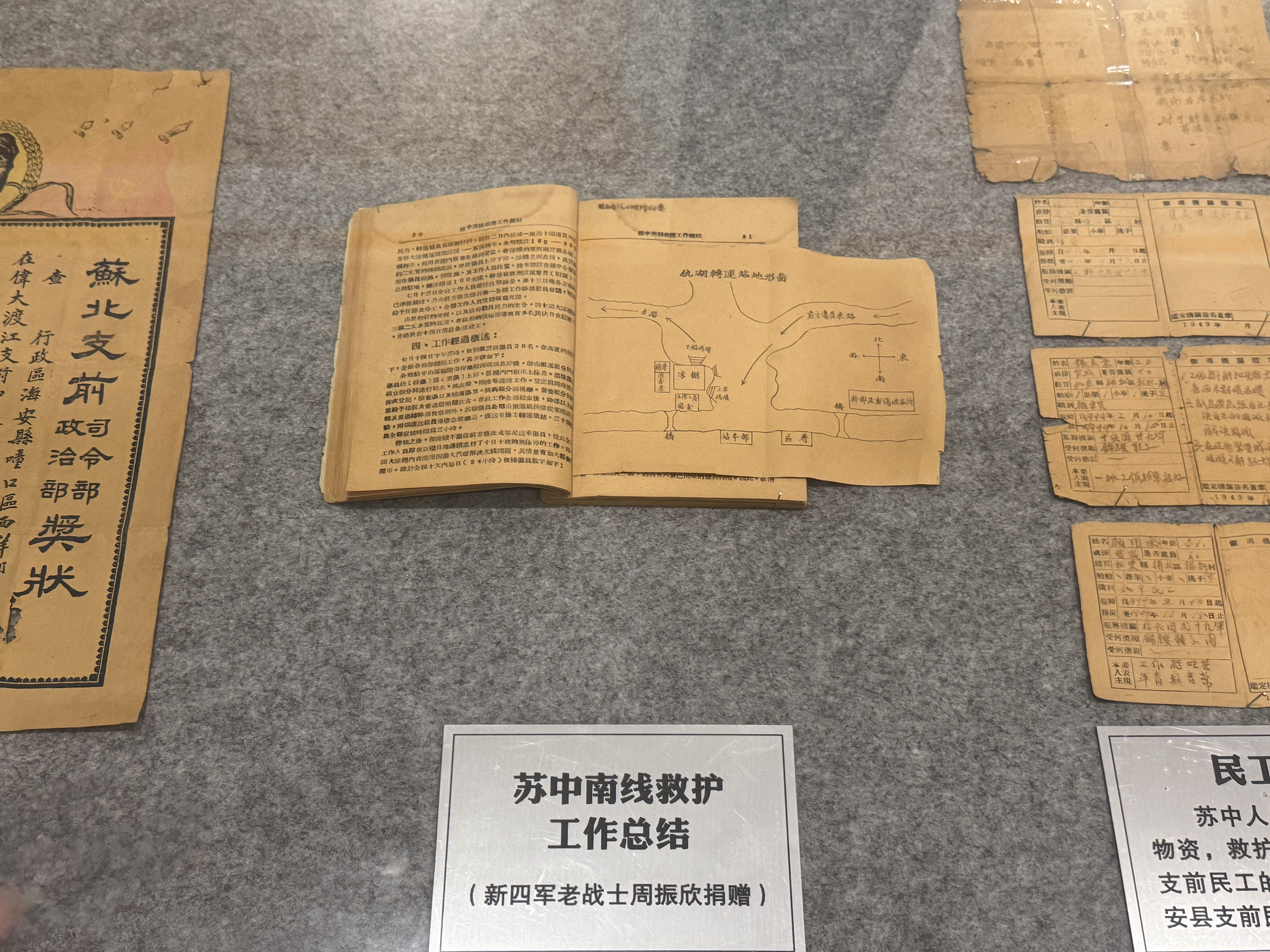 在宣泰战斗战役展区,志愿者们看到:华中野战军卫生部在仇湖镇设临时前方伤员救护转运站,轻伤员换药休整、重伤员紧急手术,连以上干部在临时干休所疗愈,这是战争环境下,尽最大努力守护伤员的“人道实践”。仇湖群众自发行动,门板当病床、组建护理组,送鸡鱼等营养品慰问,武装民兵运伤员、妇女护理、儿童放哨,全民参与的救护网络,诠释着“博爱” 精神——不分你我,只为守护生命。数据墙上,1400条民船转运物资、3747名伤员被救治,这些数字背后,是无数人默默奉献,用行动托举生命希望。从前线救治到后方支援,从专业医护到群众自发,红十字精神的人道底色,在战争救护中熠熠生辉。