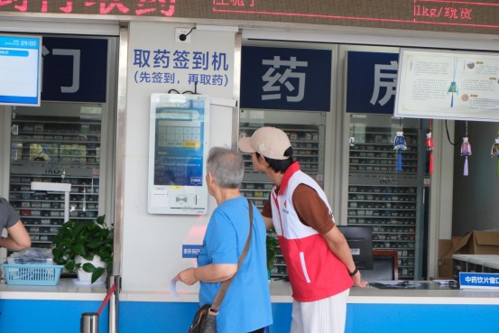 讲座结束后,志愿者们迅速转换角色,来到医院各个区域为患者及家属提供贴心帮助。在自助机区域,不少患者及家属面对操作复杂的机器面露难色,志愿者们立刻上前,手把手指导,一边操作一边讲解,帮助他们顺利完成挂号、缴费等流程;当遇到问路的人,志愿者们热情回应,不仅清晰指明方向,还会根据对方情况,提供如乘坐电梯、避开人群高峰等贴心建议。