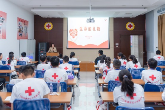 下午,红十字国际学院客座研究员、市红十字会原秘书长孟纬鸿进行了一场《红十字:生命的希望与人道的力量》的红十字运动知识讲座,带着同学们一起探索人道主义的奇妙旅程;南通市中心血站血源科科长杨玭,为同学们带来了题为《生命的礼物》的“三献”知识讲座。通过听课,营员们更加深了对“人道博爱奉献”红十字精神的理解。
