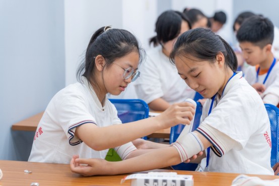 市红十字会应急救护师资还为营员们开展了一期针对青少年的应急救护课程。从止血、包扎、固定、搬运的创伤救护到气道异物梗阻、运动扭伤、溺水、火灾等生活中常见意外伤害的识别与处理,同学们边听边动手练习,初步掌握了心肺复苏和AED使用的流程和动作要领。