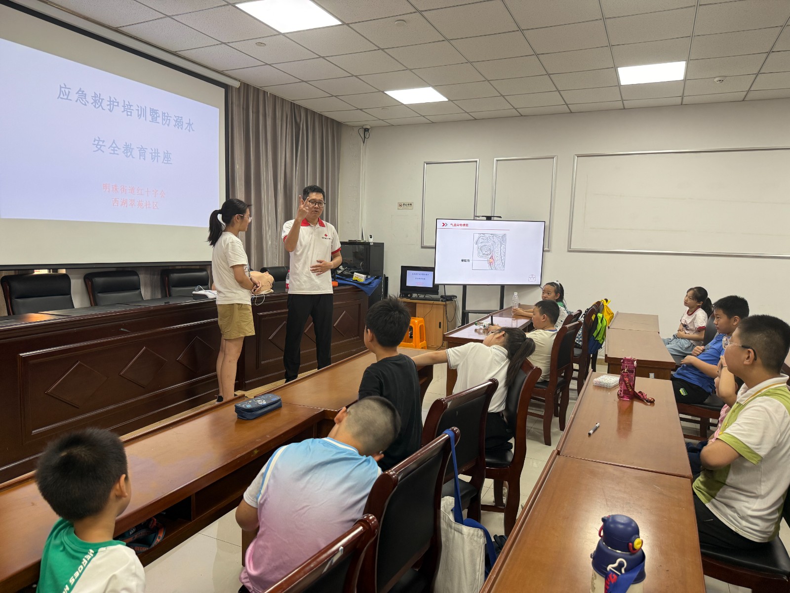 快乐过暑假,安全不“放假”!8月8日,明珠街道红十字会走进西湖翠苑社区的爱心暑托班,为20余名少年儿童带来了一场生动实用的防溺水和应急救护培训。