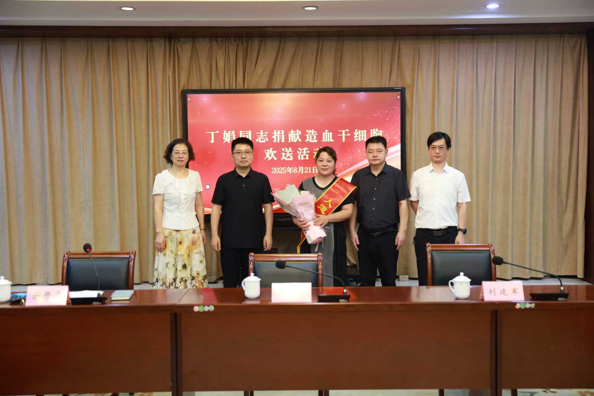 8月21日上午,射阳县红十字会在江苏射阳经济开发区科创大厦二楼会议室举行丁娟同志赴南京捐献造血干细胞欢送活动。