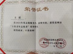 [苏州市]红十字应急救援队队员方超获评2021年度苏州市“十佳青年志愿者”