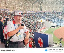 9月20日,“苏超”联赛盐城对阵连云港的比赛,在盐城奥体中心,火热开赛。东台红会派出8名骨干救援队员,与盐城市直、盐都、亭湖红会32名救援队员组成红十字救护队。参与赛事保